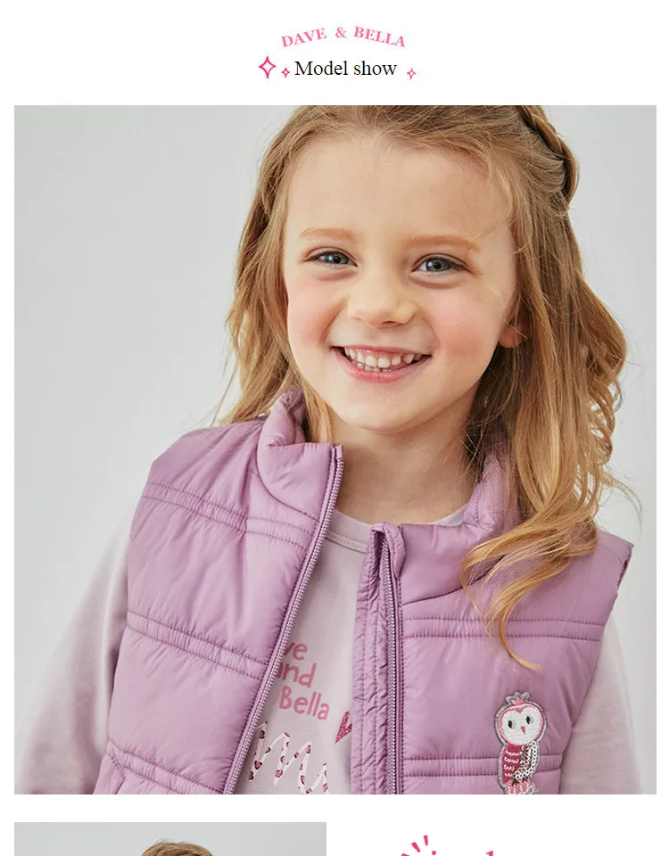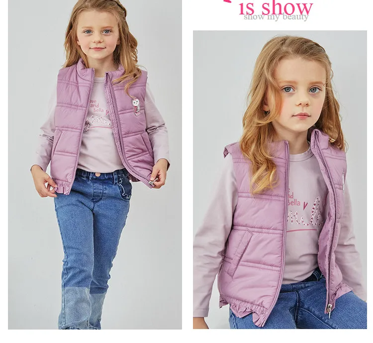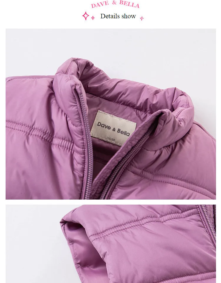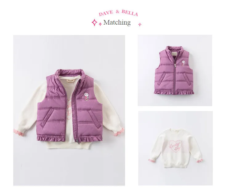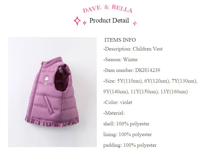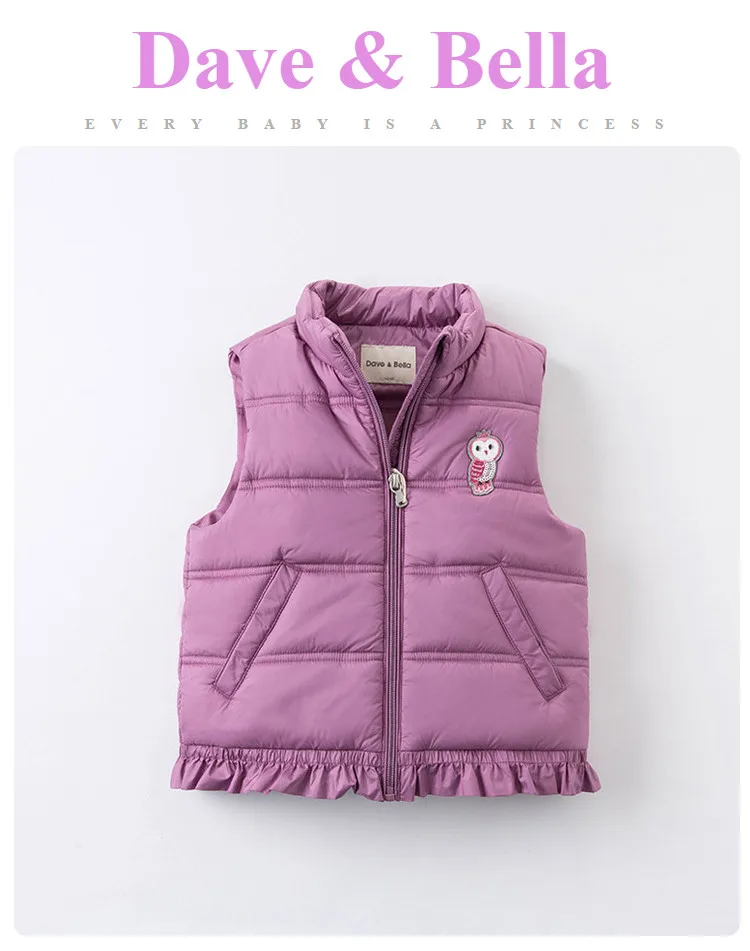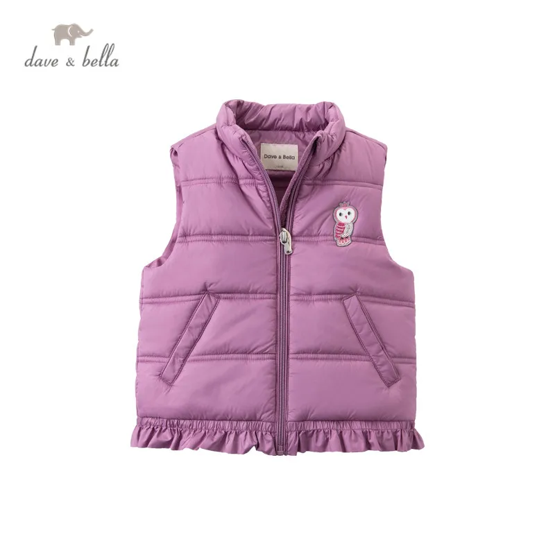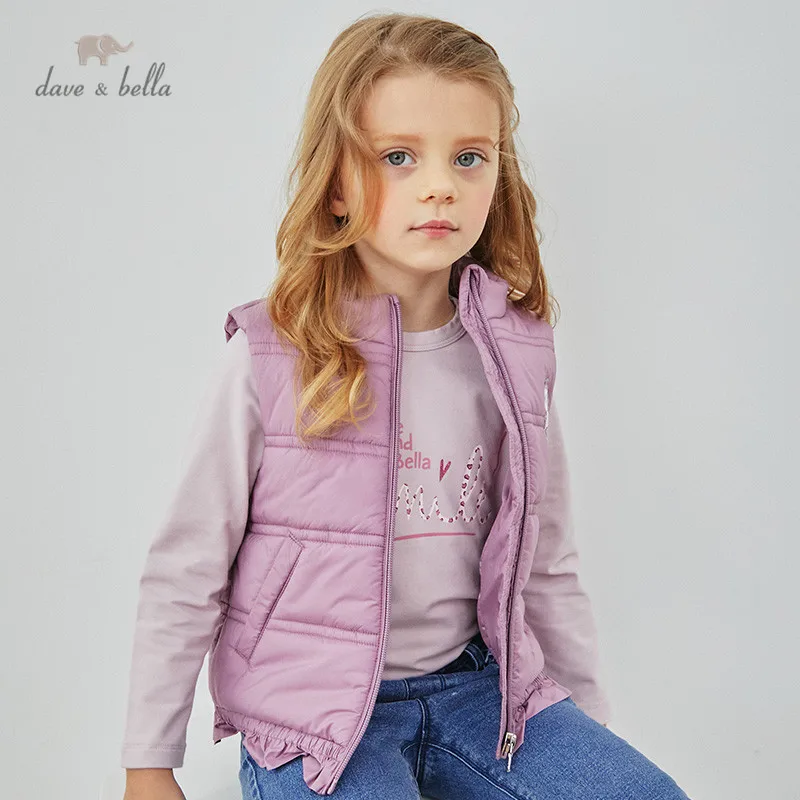DKH14239 dave bellaзимнее детское От 5 до 13 лет для девочек модное Стеганое пальто с карманами и рюшами детский модный жилет без рукавов
