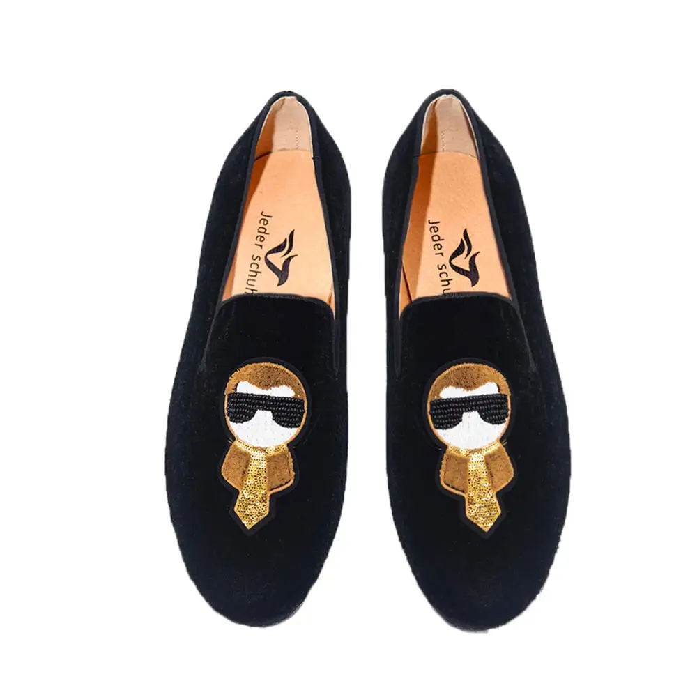 Лоферы Jeder S, мужские вельветовые туфли ручной работы, модные мужские Черные слипоны с вышивкой, мужские туфли на плоской подошве для вечеринок и свадеб