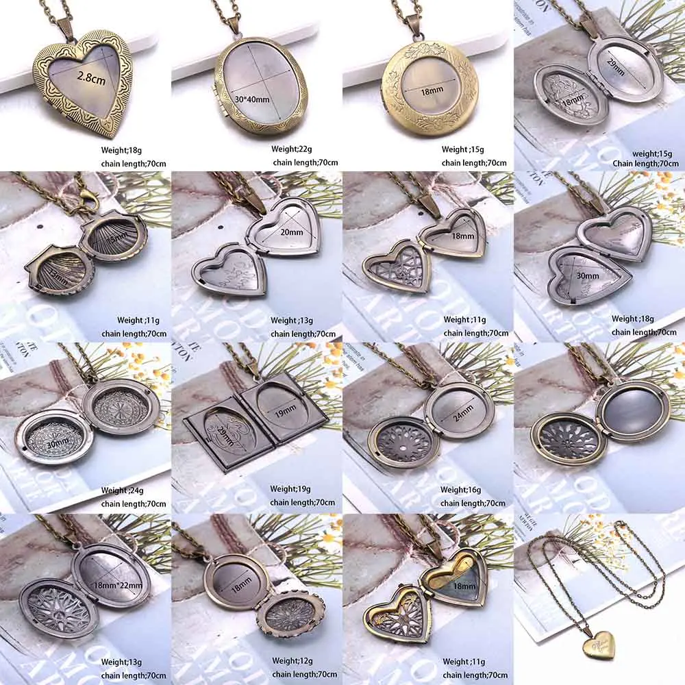 Ожерелье с подвеской в форме сердца с романтической фотографией, Модный кулон в виде коробки с памятью, медное резное ожерелье в стиле ретро с цветами для пар