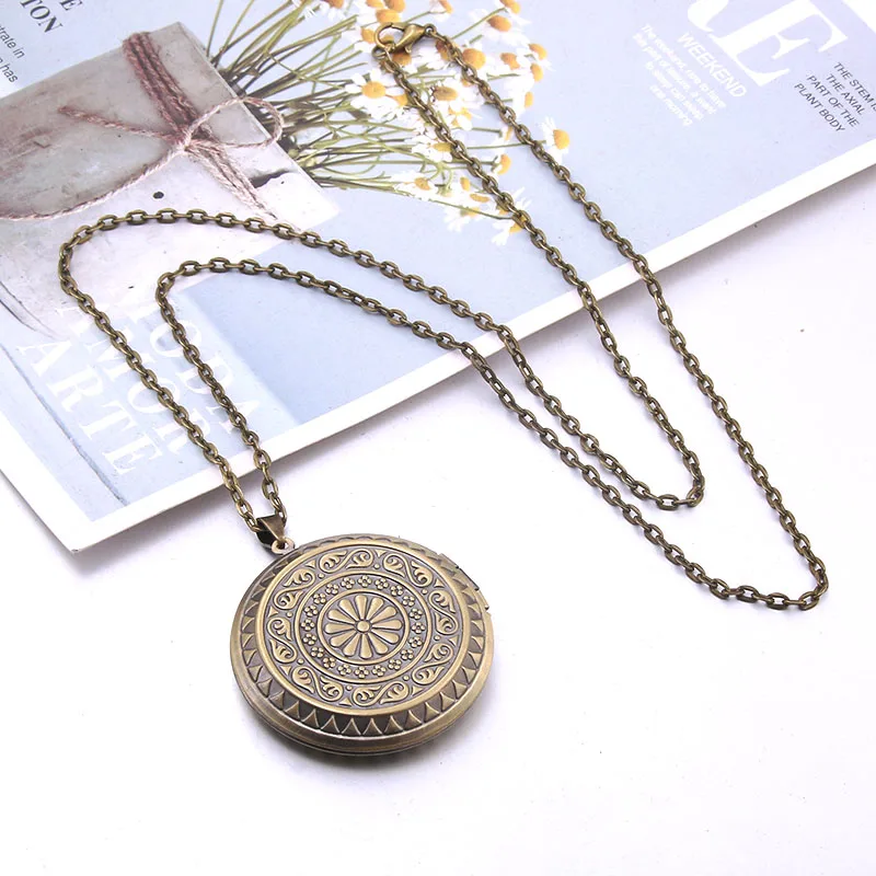 Память фото кулон ювелирные изделия Винтаж Медный резной цветок фот...