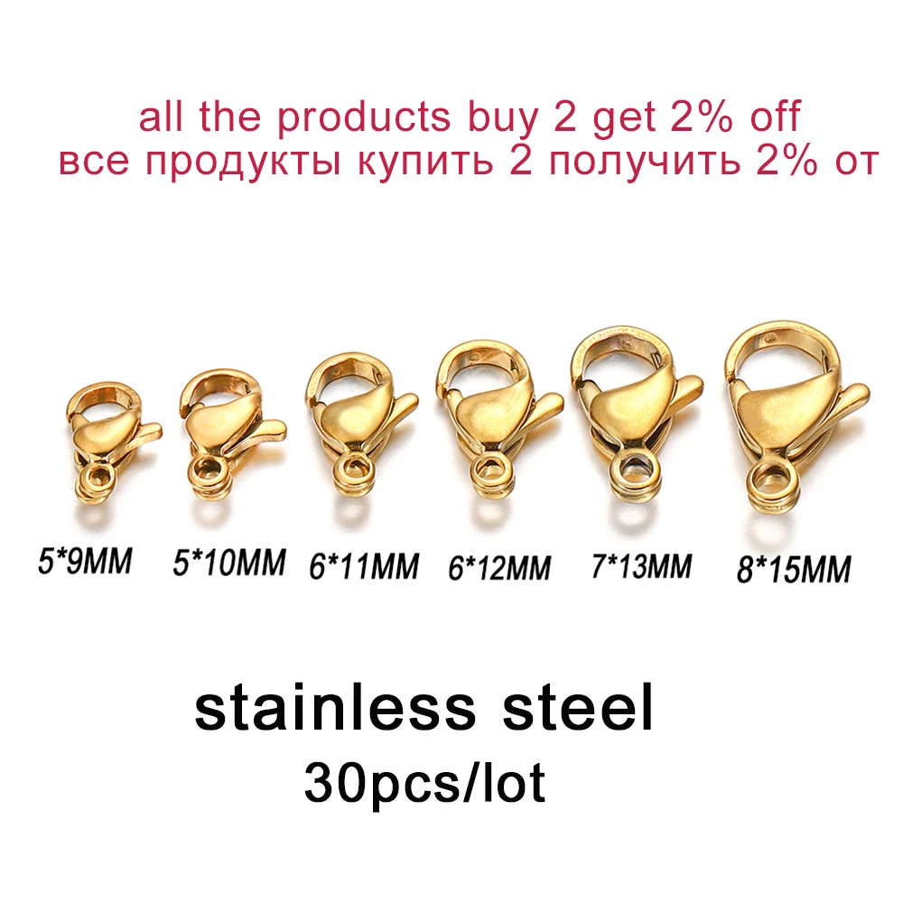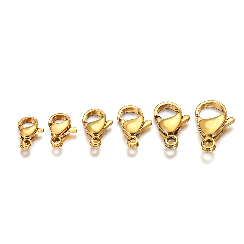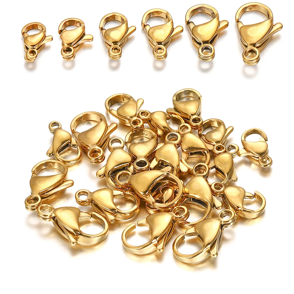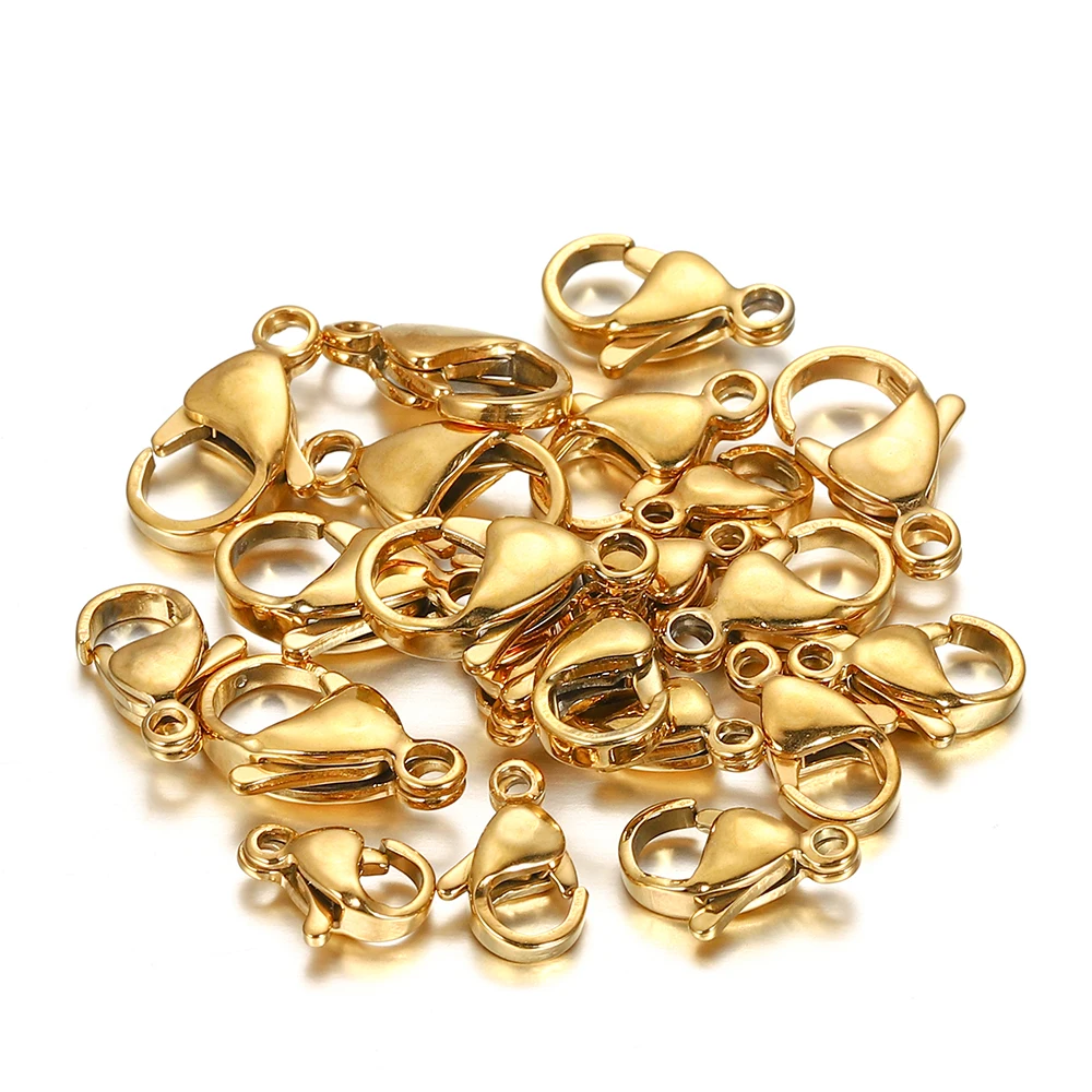 30 шт.лот 9 10 11 12 13 15 мм золото нержавеющая сталь карабин карабины фурнитура разъем для изготовления ювелирных изделий DIY цепи поставки