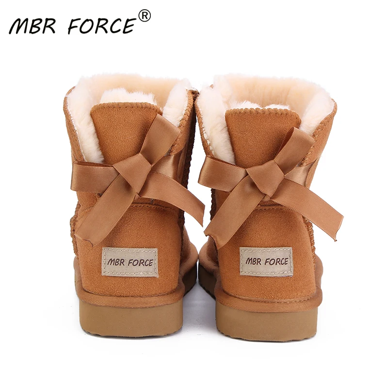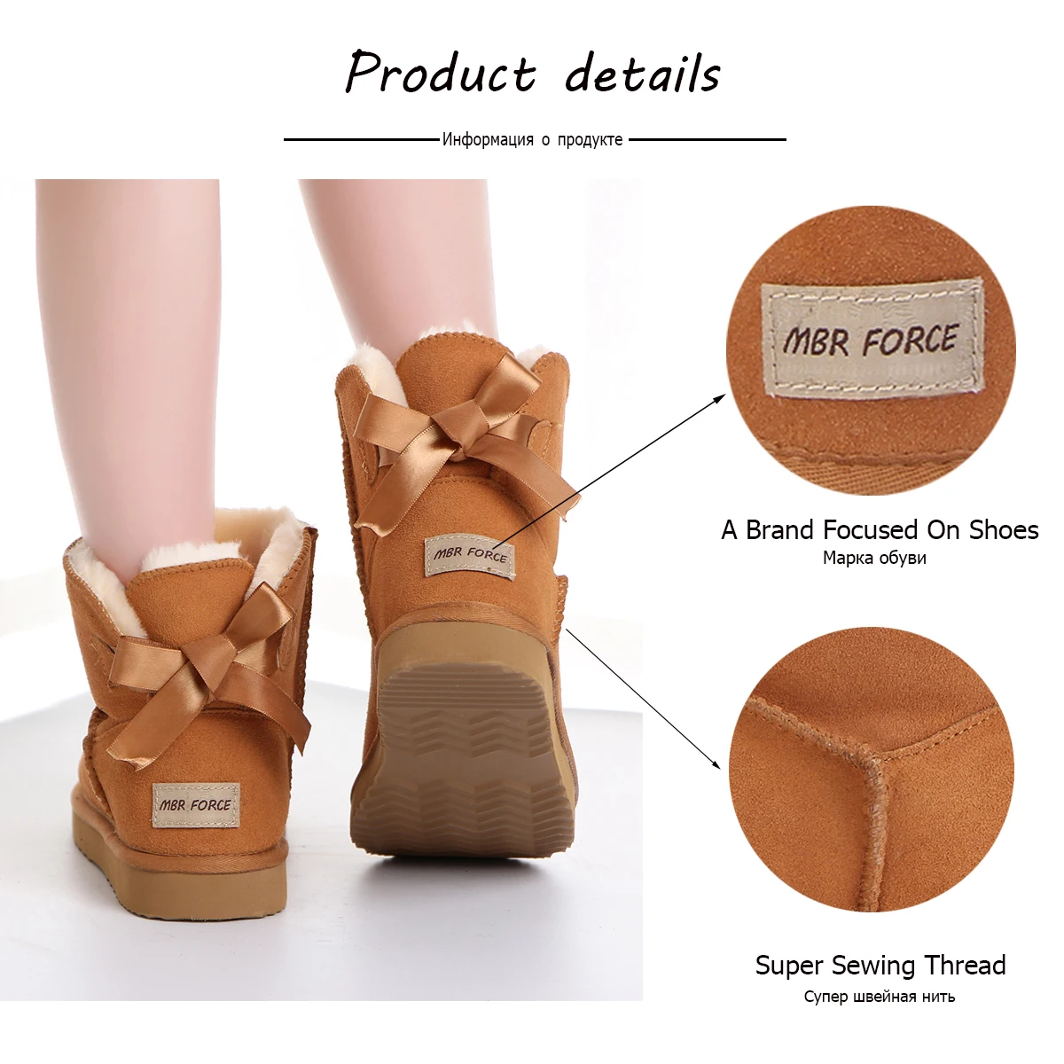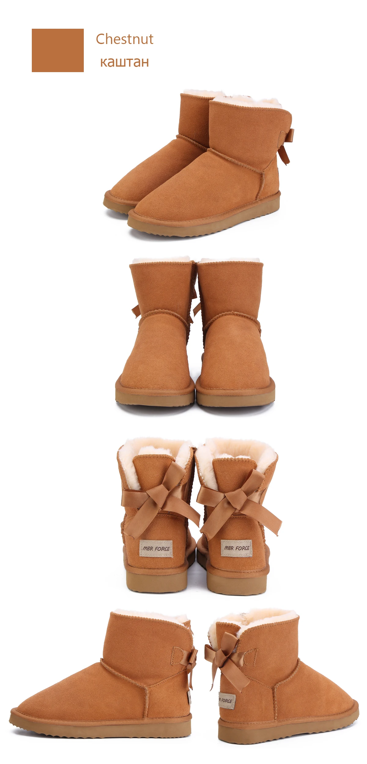 MBR FORCEклассические женские теплые зимние ботинки; Зимние ботинки с бантом из натуральной воловьей кожи; Женские ботинки; Ботильоны; Обувь на меху; 2020