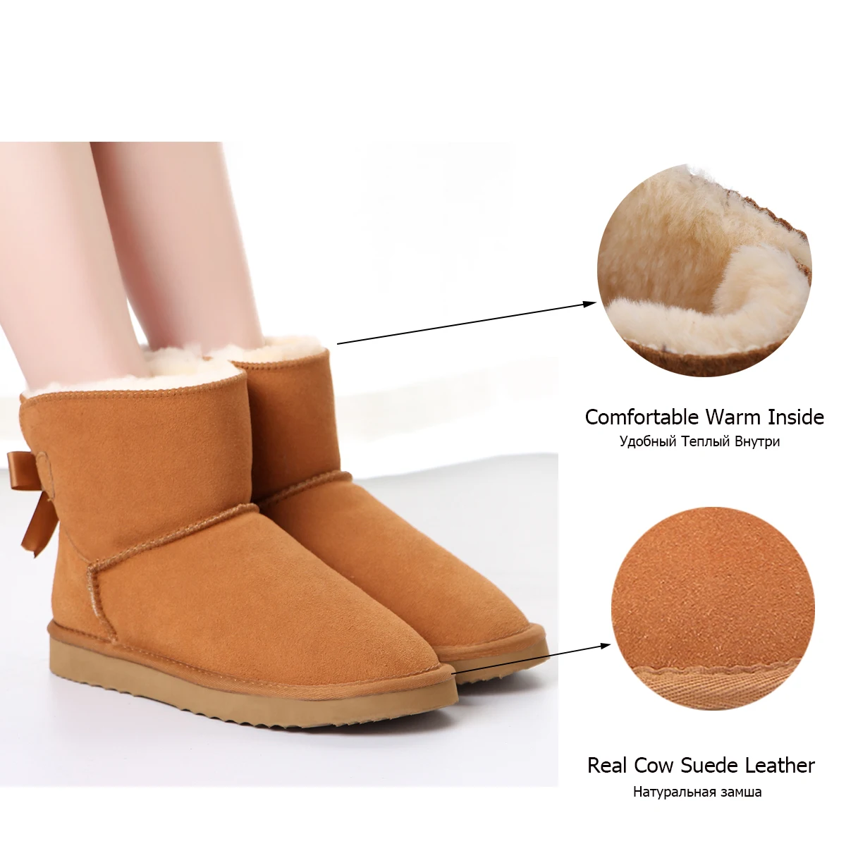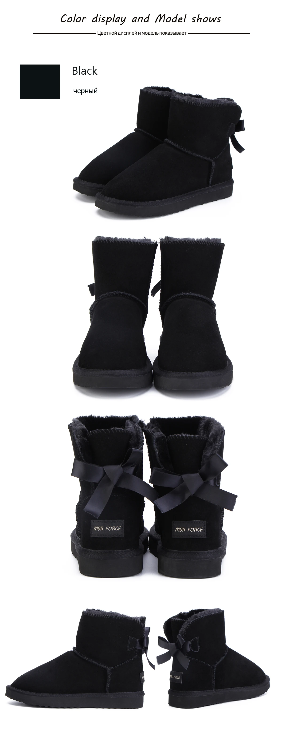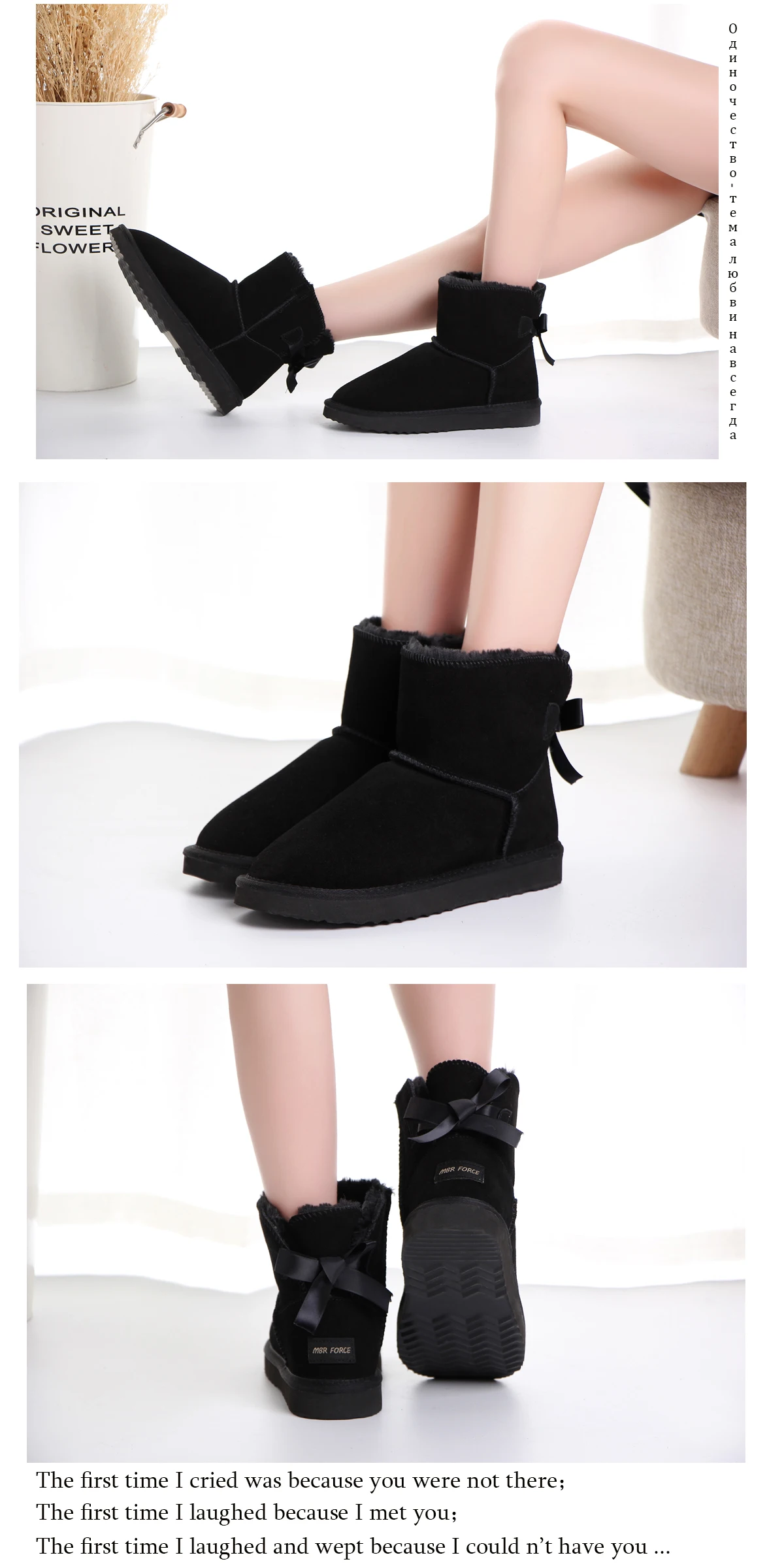 MBR FORCEклассические женские теплые зимние ботинки; Зимние ботинки с бантом из натуральной воловьей кожи; Женские ботинки; Ботильоны; Обувь на меху; 2020
