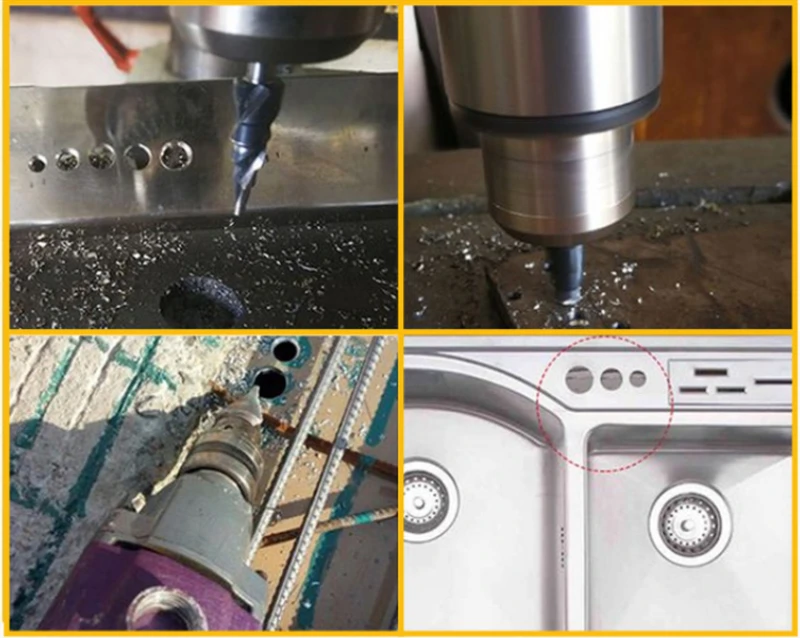 1. Ручная дрель (более 550 Вт), толщина 1-2 мм, диаметр отверстия более 14 мм, требует работы скамейки. (Рекомендуется сверлить заготовку с твердостью нержавеющей стали 25 ° или меньше)2. При бурении, впрыске воды и охлаждении во время бурения, эффективно продлить срок службы сверла. (Рекомендуемая скорость 250-400)