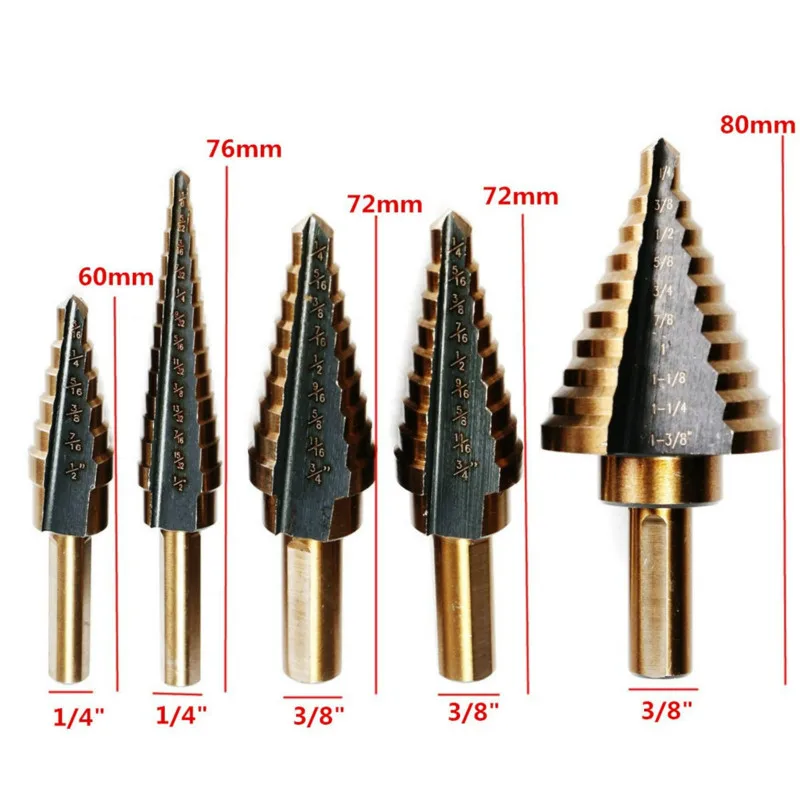 1/4" Step Cone Taper Drill Bit Set Metric Metal Hex Drill Bits