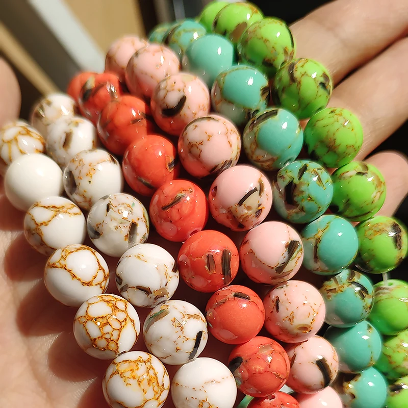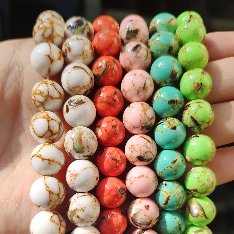 Многоцветный в виде ракушки говлита закрученная Золотые круглые свободные бусины Spacer Бусины для самостоятельного изготовления ювелирных изделий браслет ручной работы 15 дюймов