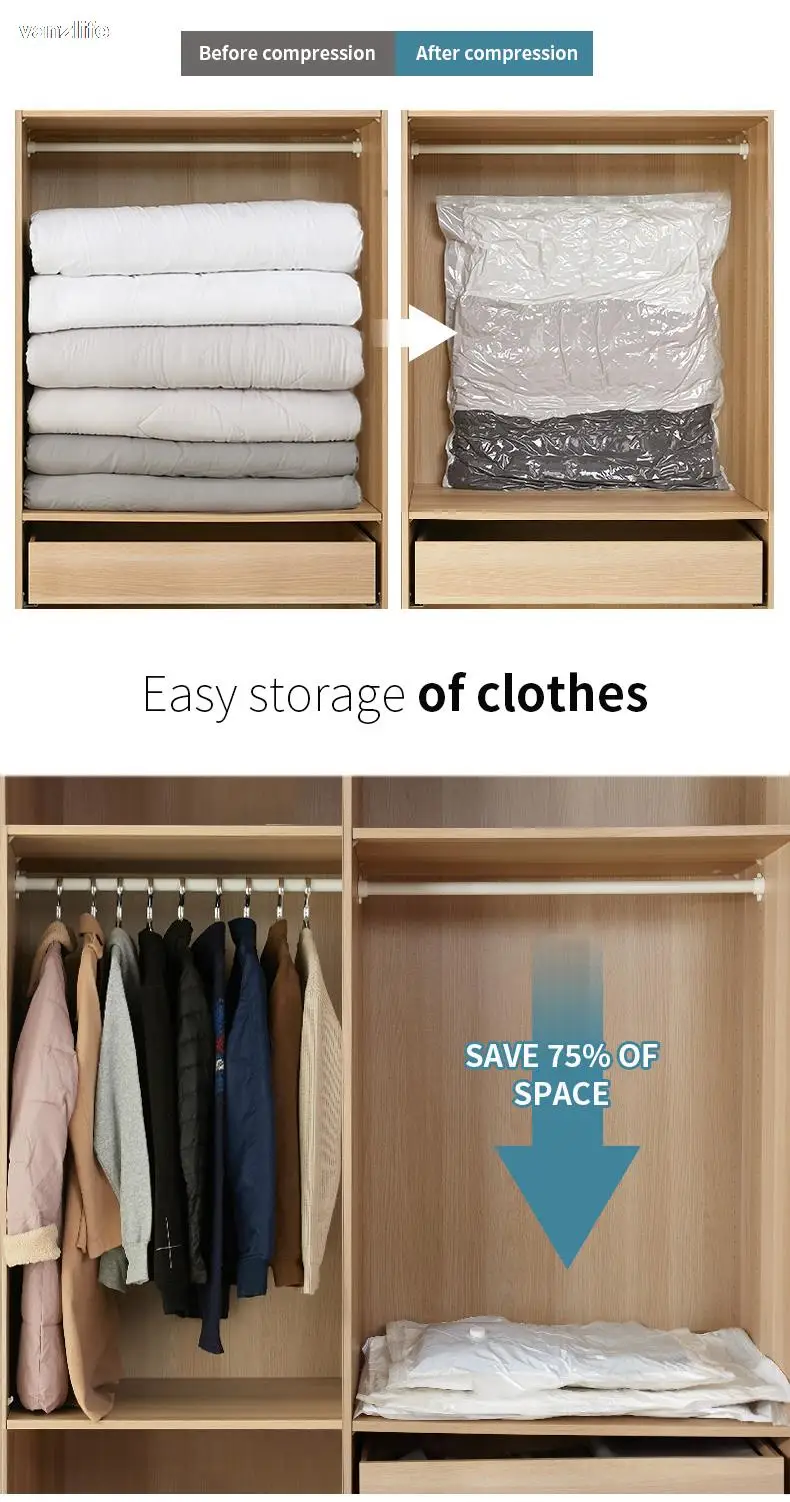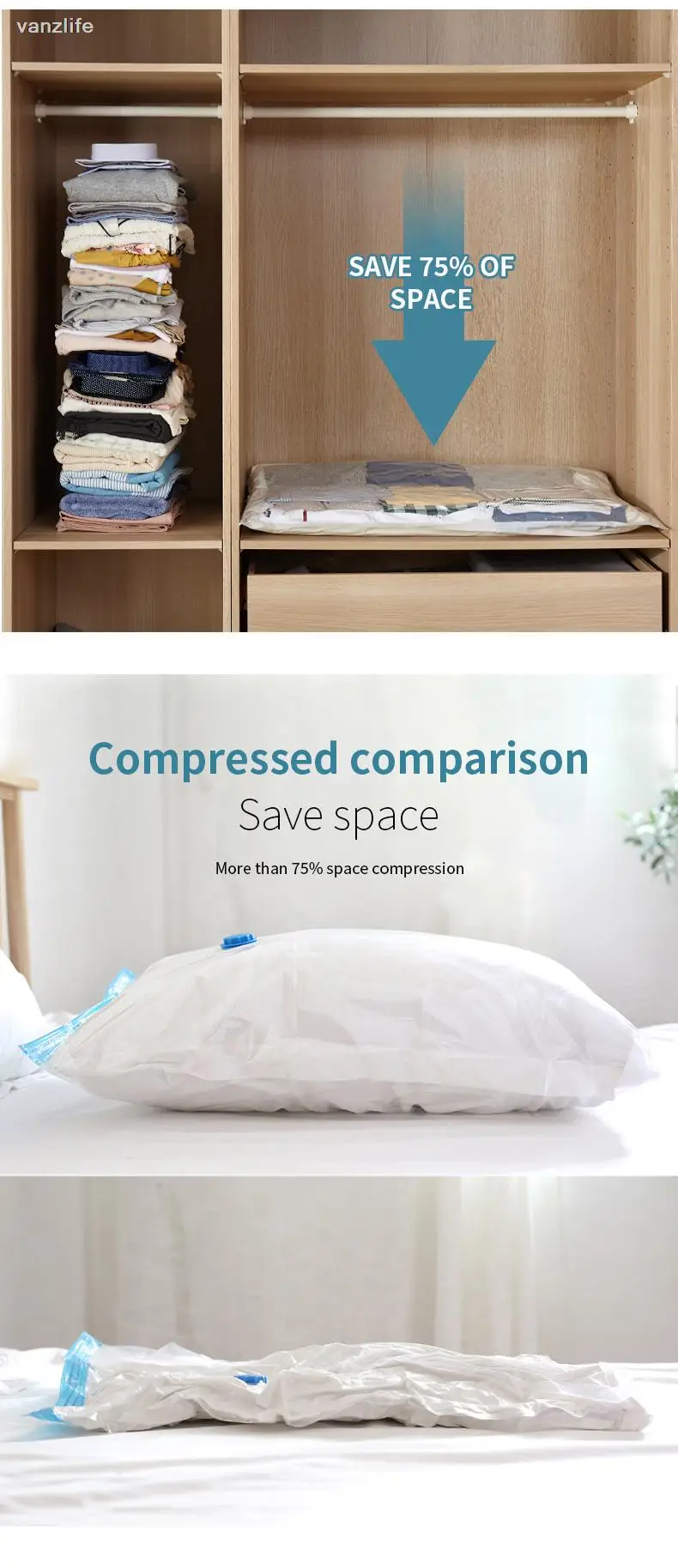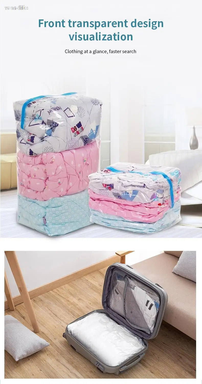 Vanzlife домашний Вакуумный пакет для хранения, органайзер с прозрачными краями, складной органайзер для одежды, сжатое уплотнение, дорожная сумка, экономичная упаковка