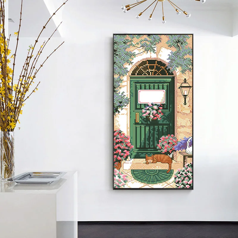 Наборы для вышивки крестиком «Кот перед дверью», наборы для вышивки на холсте 11CT 14CT, картины для домашнего декора «сделай сам», рукоделие ручной работы