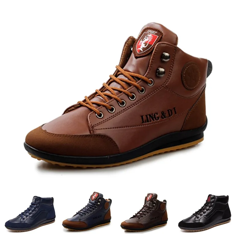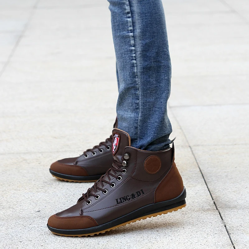 Мужские кожаные ботинки из искусственной кожи, на шнуровке, модные ковбойские ботинки с высоким верхом на плоской подошве, весна-осень