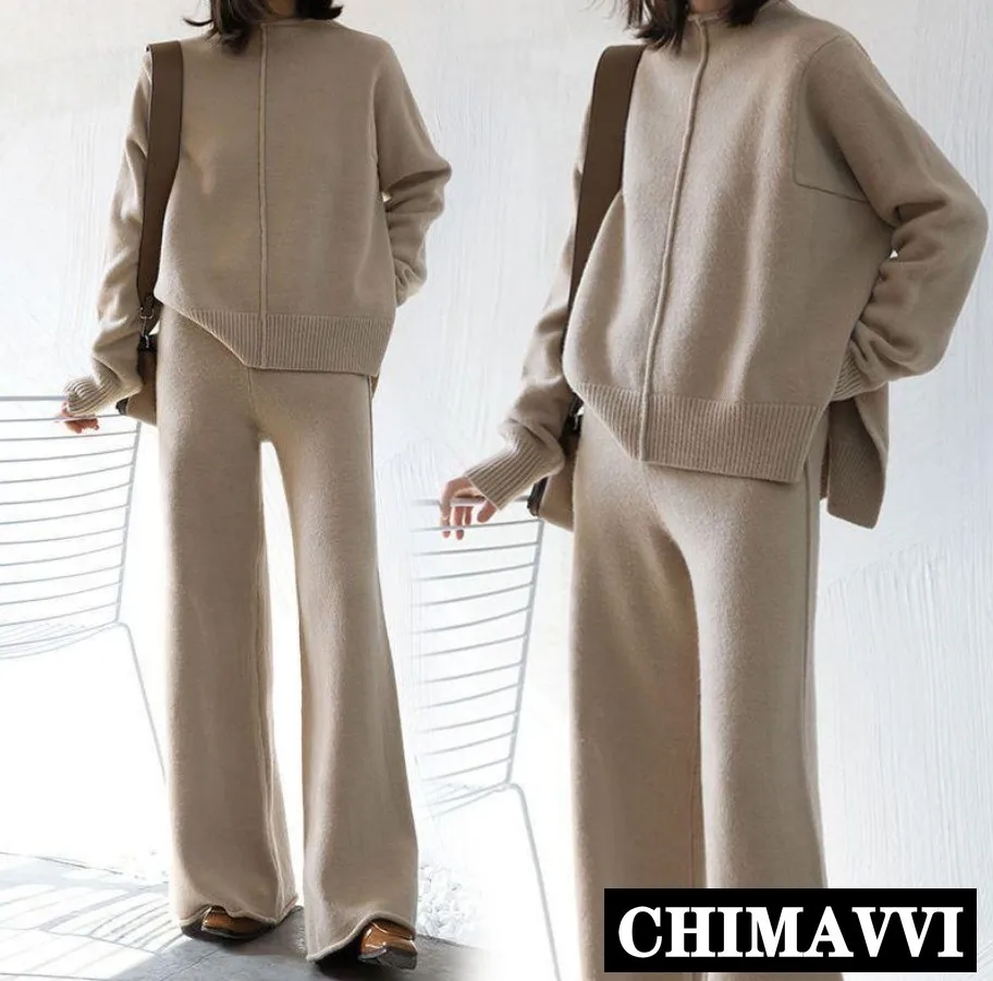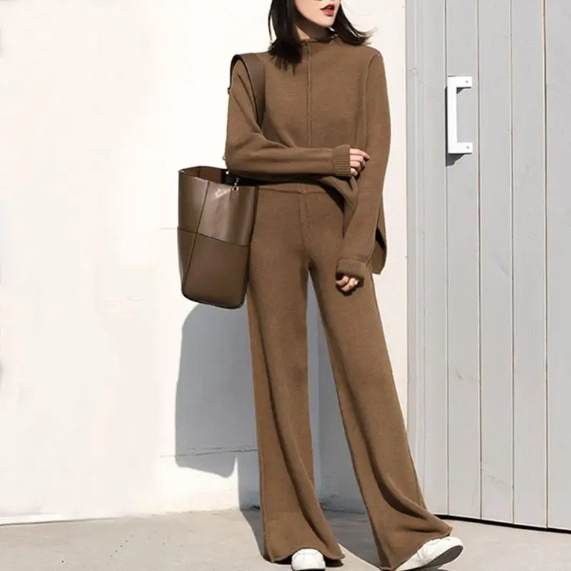 Зимний спортивный костюм, комплект из 2 предметов с брюками, вязаный свитер с длинным рукавом и свободные штаны