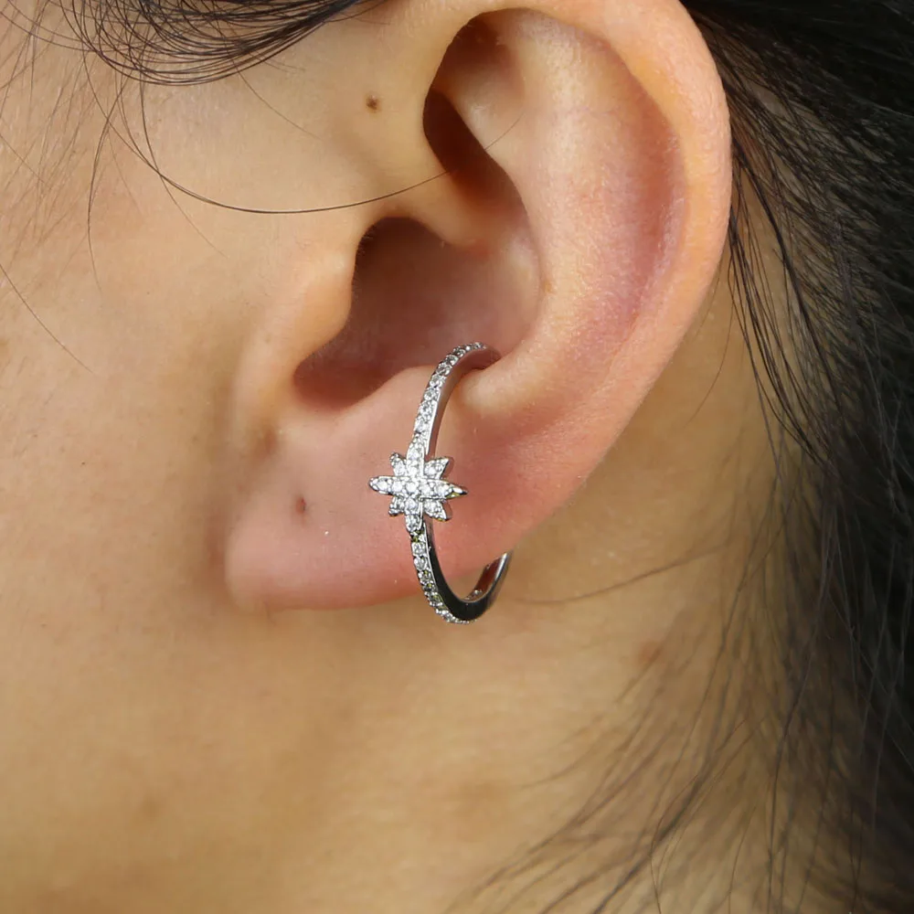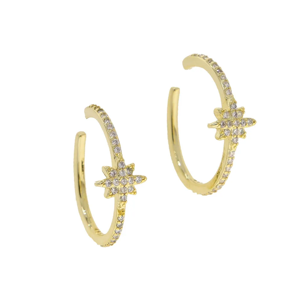 Женские серьги без пирсинга micro pave cz north star starburst, серьги-Каффы