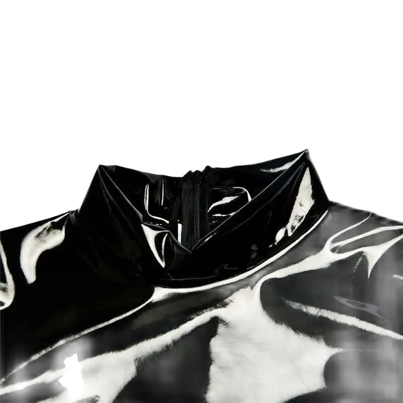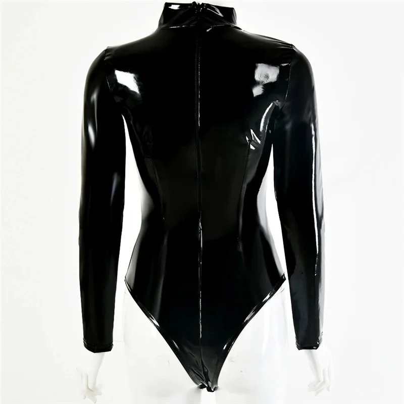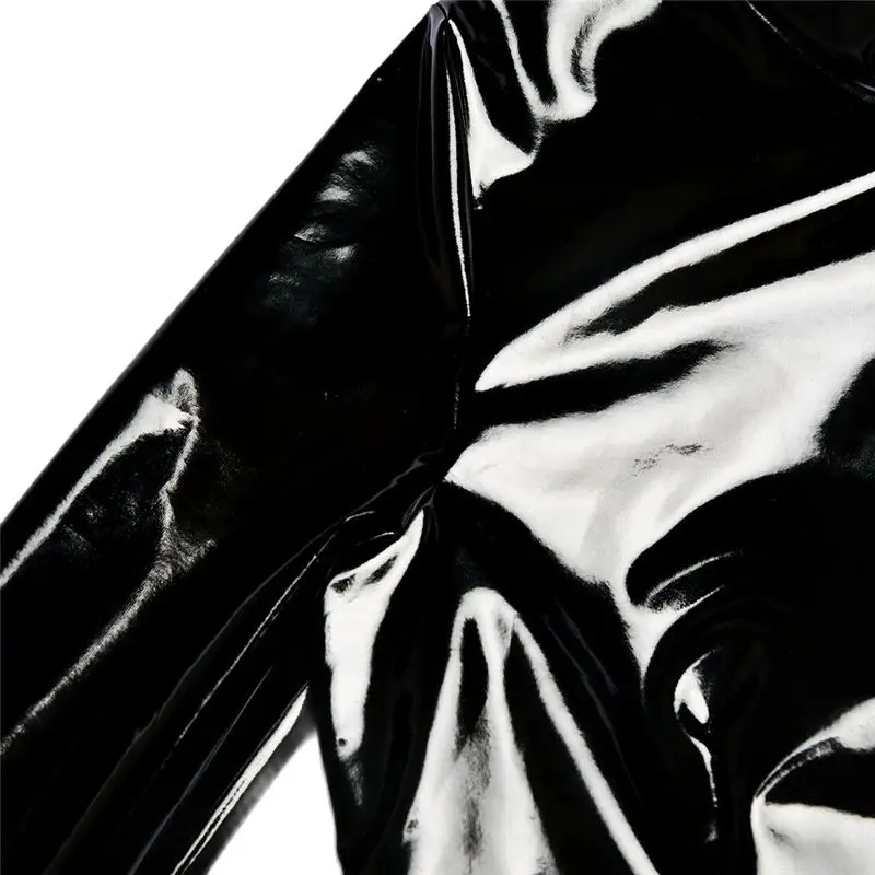 Готическая водолазка с мокрым внешним видом, боди с длинным рукавом, рубашка, блестящий боди из ПВХ, боди, топы, сексуальное боди, Клубная одежда, цельный топ
