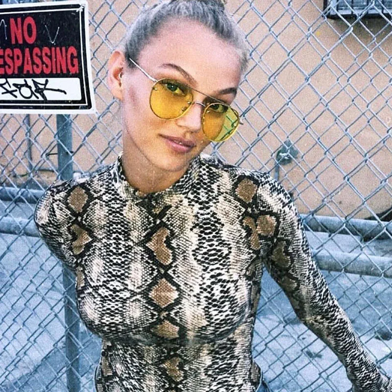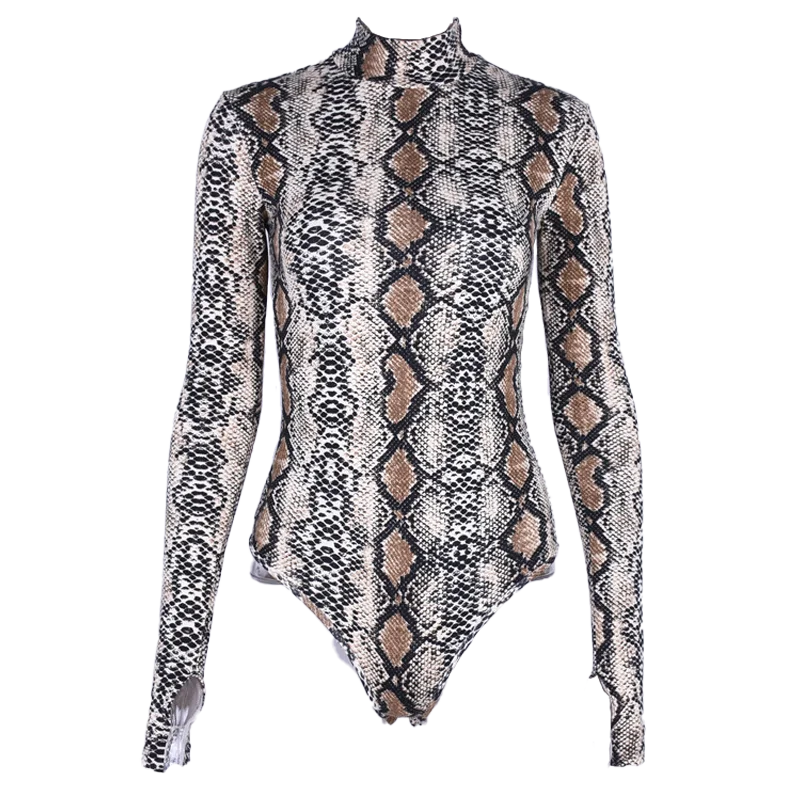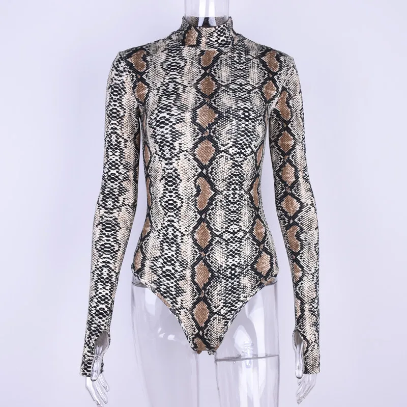 Новинка весны 2020, женская сексуальная приталенная цельная комбинезон Харадзюку С Длинным Рукавом и принтом змеи, Прямая поставка