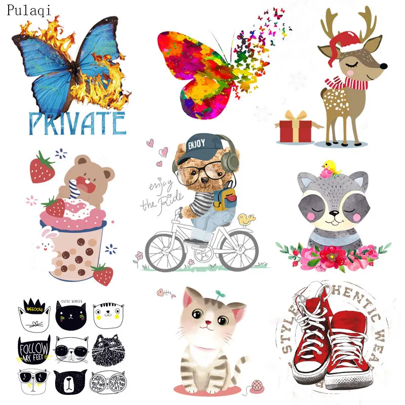 Pulaqi бабочка Железный На переноске наклейка на одежду патч мультфильм кошка патч теплопередача виниловые полосы для одежды аппликация