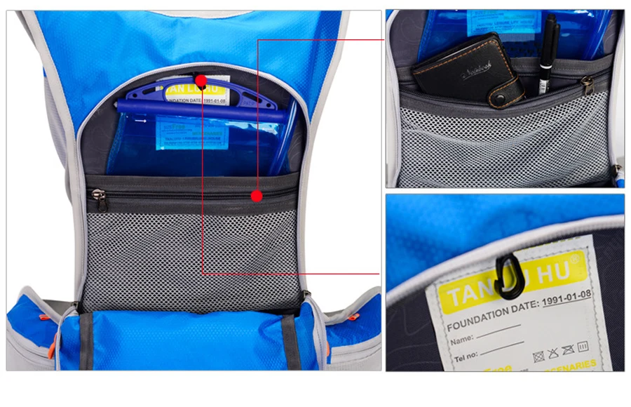 1. Водоотталкивающая и износостойкая нейлоновая ткань. 2. Высококачественные молнии 3. Дышащая мягкая задняя панель, регулируемый ремень грудины и плечевой ремень. 4. Боковые и передние регулируемые ремни для подвешивания всего, что вам нужно. 5. С сеткой для шлема. Может держать шлем на спине