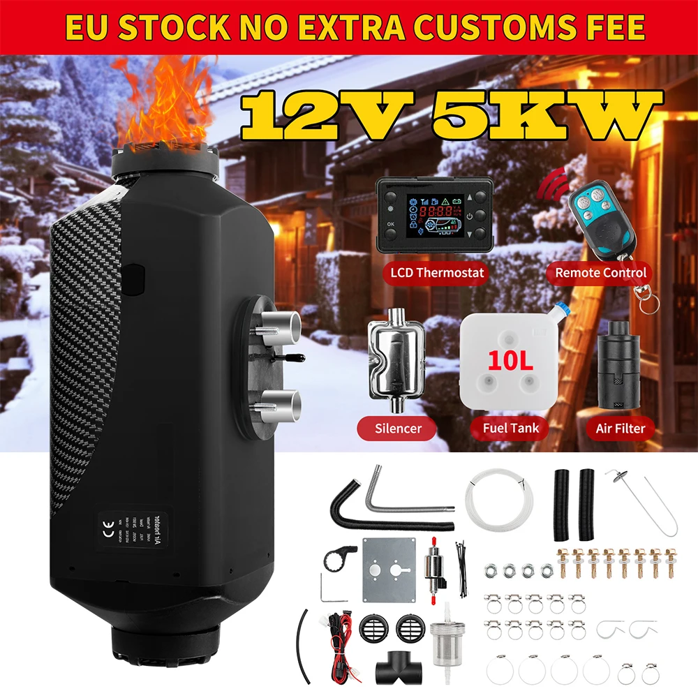 Автомобильный обогреватель 5000 Вт 12 В, дизельный Обогреватель, термостат с пультом дистанционного управления + ЖК-пульт дистанционного управления, стояночный обогреватель 5 кВт для автодома, фургона, грузовика