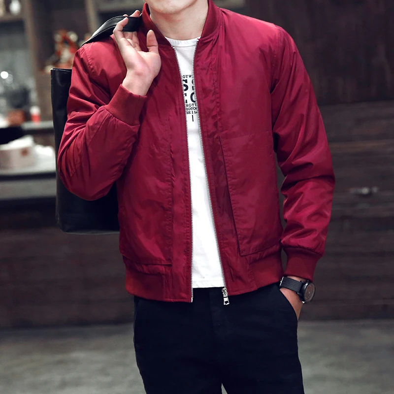 Однотонная куртка-бомбер, мужские повседневные приталенные Бейсболь...