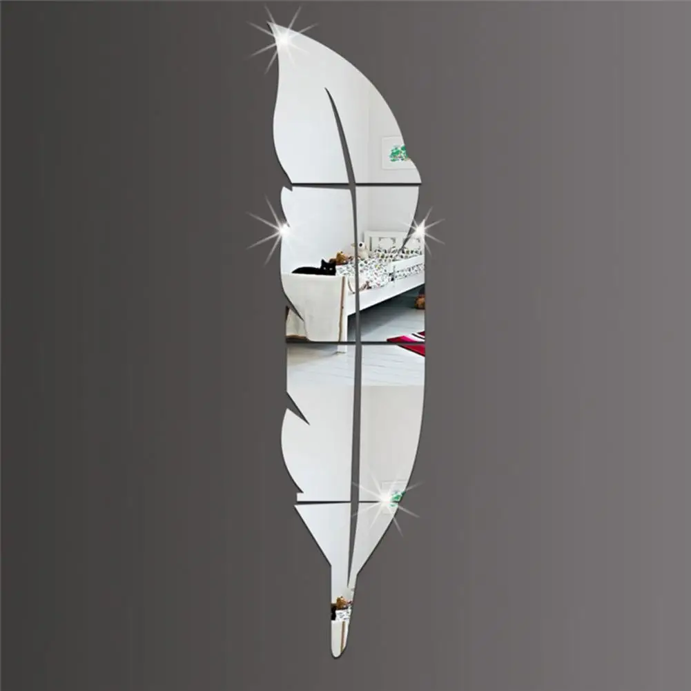 DIY перо шаблон акриловый зеркальный эффект Наклейка на стену стикер для украшения дома 15*72 см # W0
