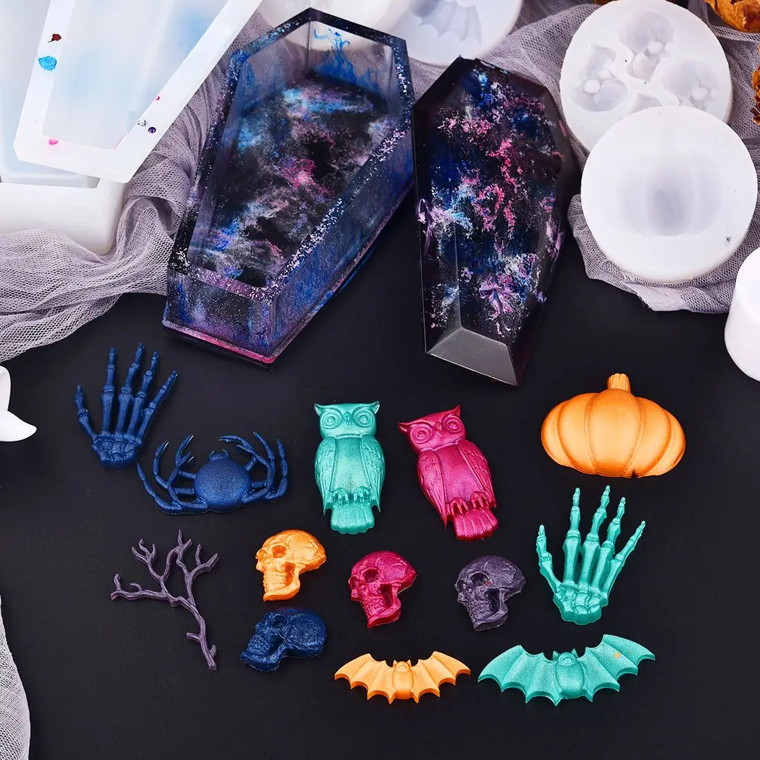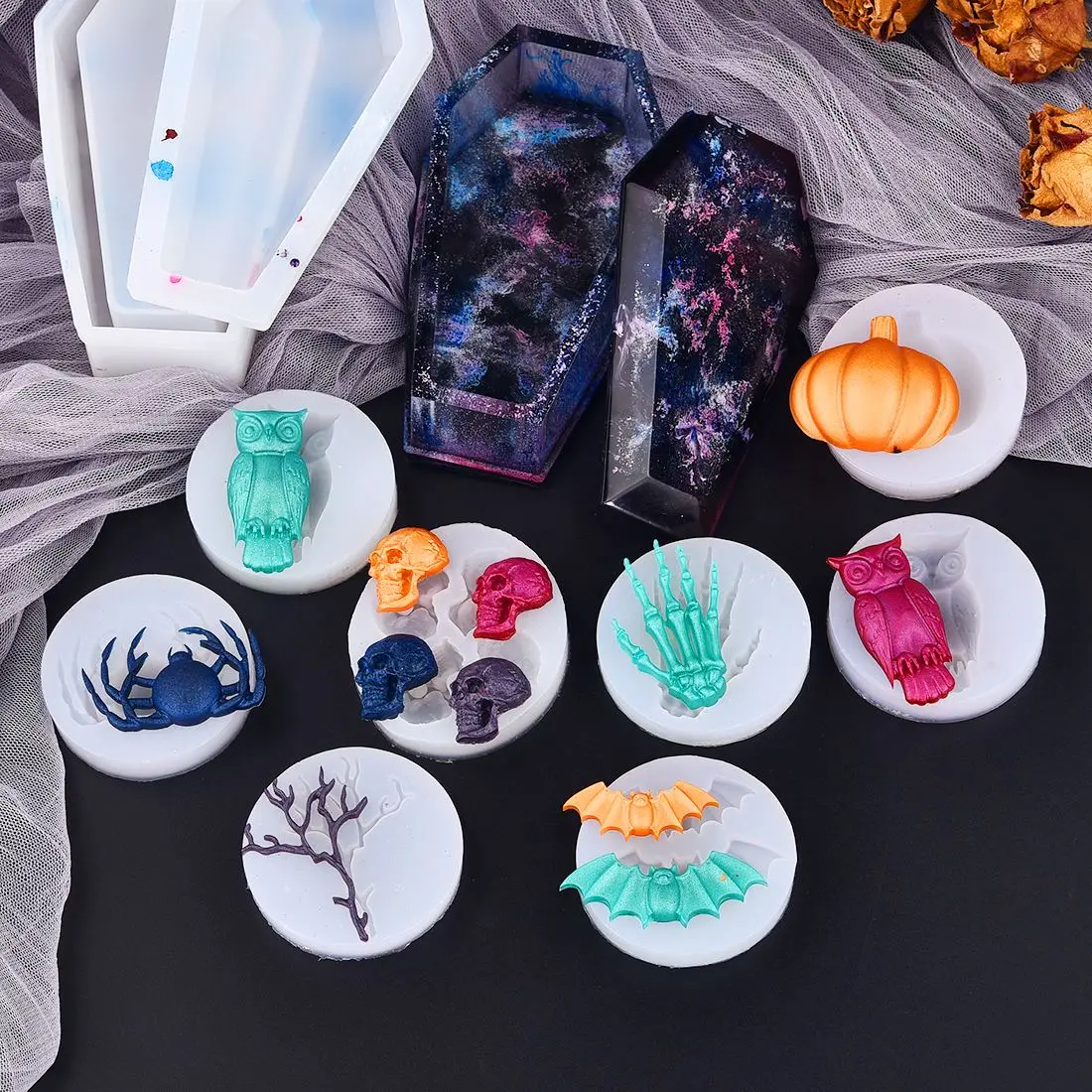 Силиконовая форма для гроба для Хэллоуина, форма в форме тыквы, черепа, совы, летучей мыши, эпоксидная смола, УФ-полимер для поделок сделай сам, принадлежности для изготовления ювелирных изделий