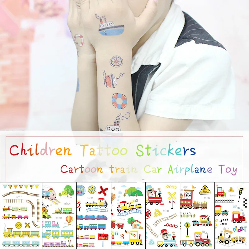 Милый мультяшный поезд, машинка, самолет, игрушка, тату, наклейки, поддельные татуировки, Детские татуировки, наклейка, паста на лицо, рука, нога для детей, боди-арт
