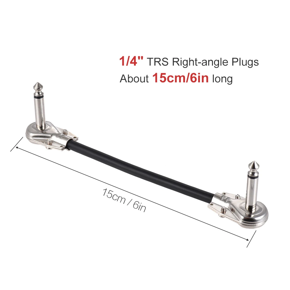 Кабель для гитарной педали эффектов ammoon, кабель для нашивка в виде музыкального инструмента, серебристый Прямоугольный штекер 14 дюйма, в черной ПВХ оболочке, 3 шт.6 шт., 30 см12 дюймов