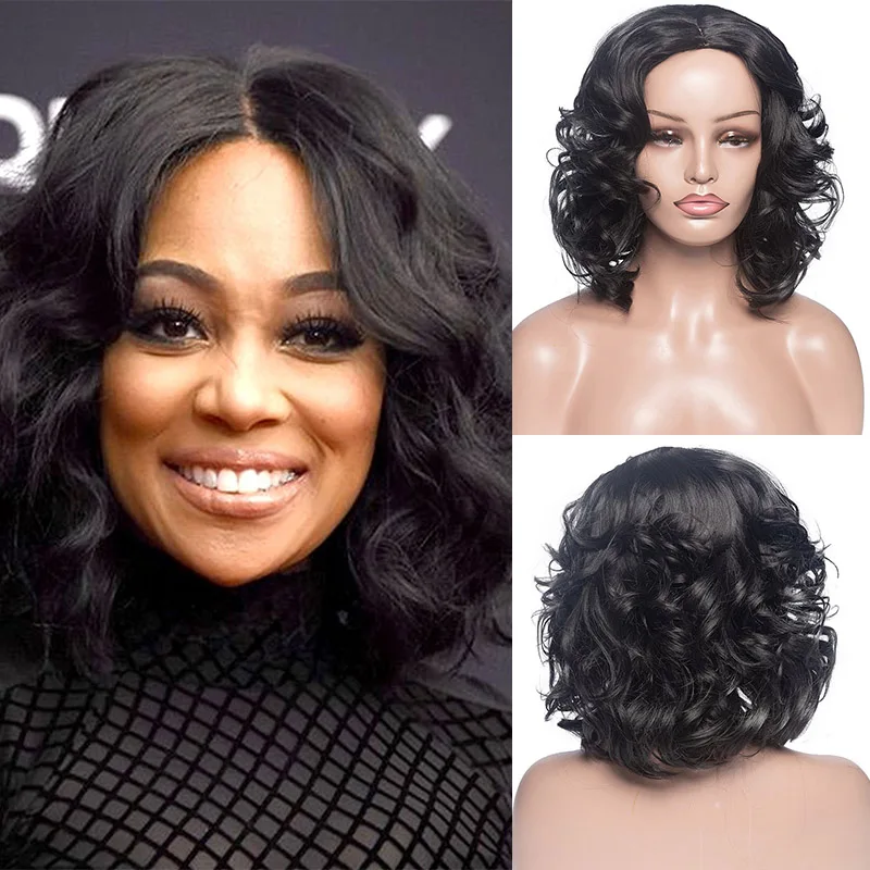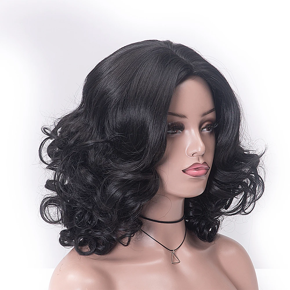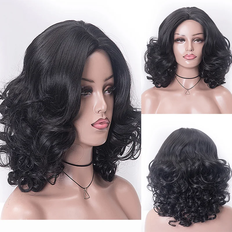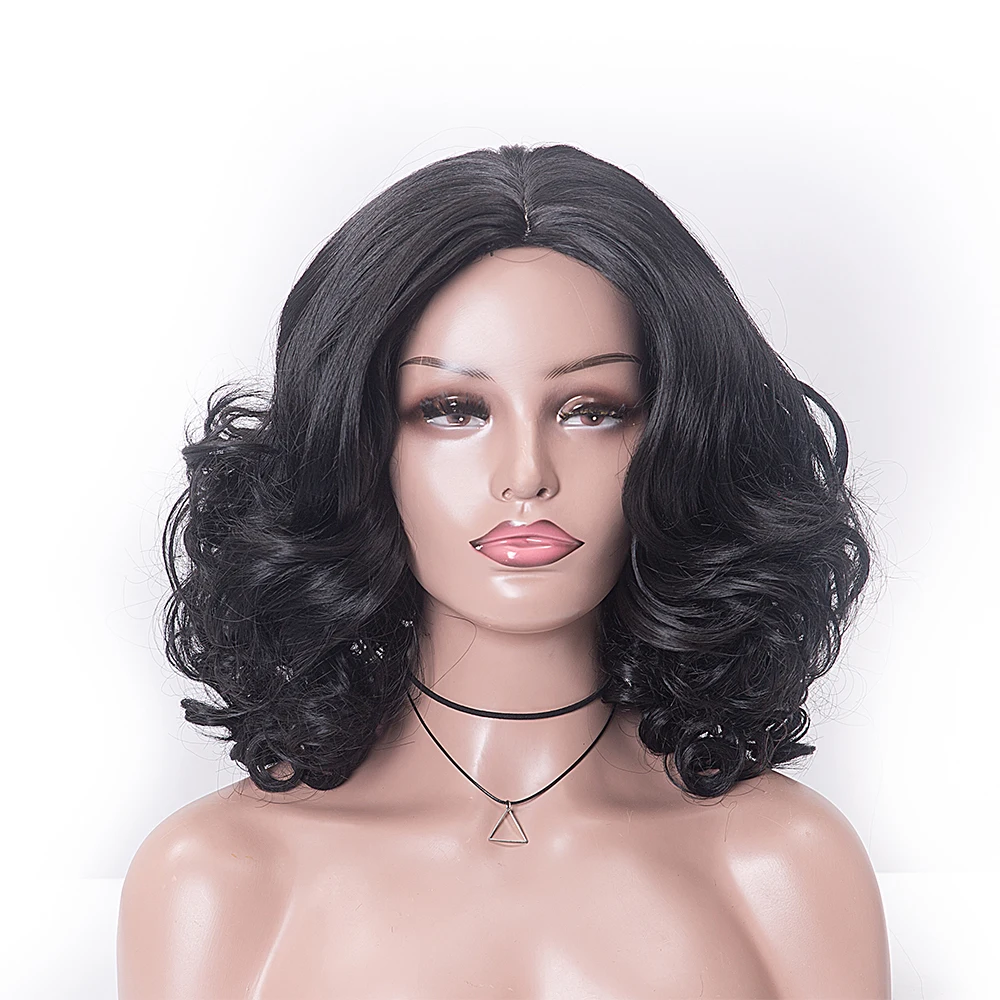 Синтетические черные парики средней длины, натуральные волнистые искусственные волосы для женщин, черные волосы средней длины, парики для косплея, Боб, для повседневвечерние