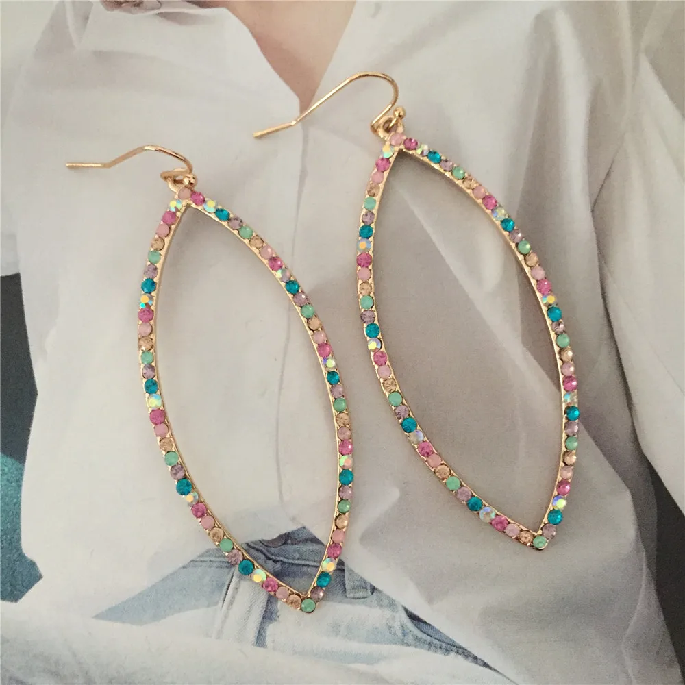 Новые Модные Элегантные женские большие серьги-капли золотого цвета, цветные декоративные серьги с цветным камнем, женские крупные ювелирные изделия