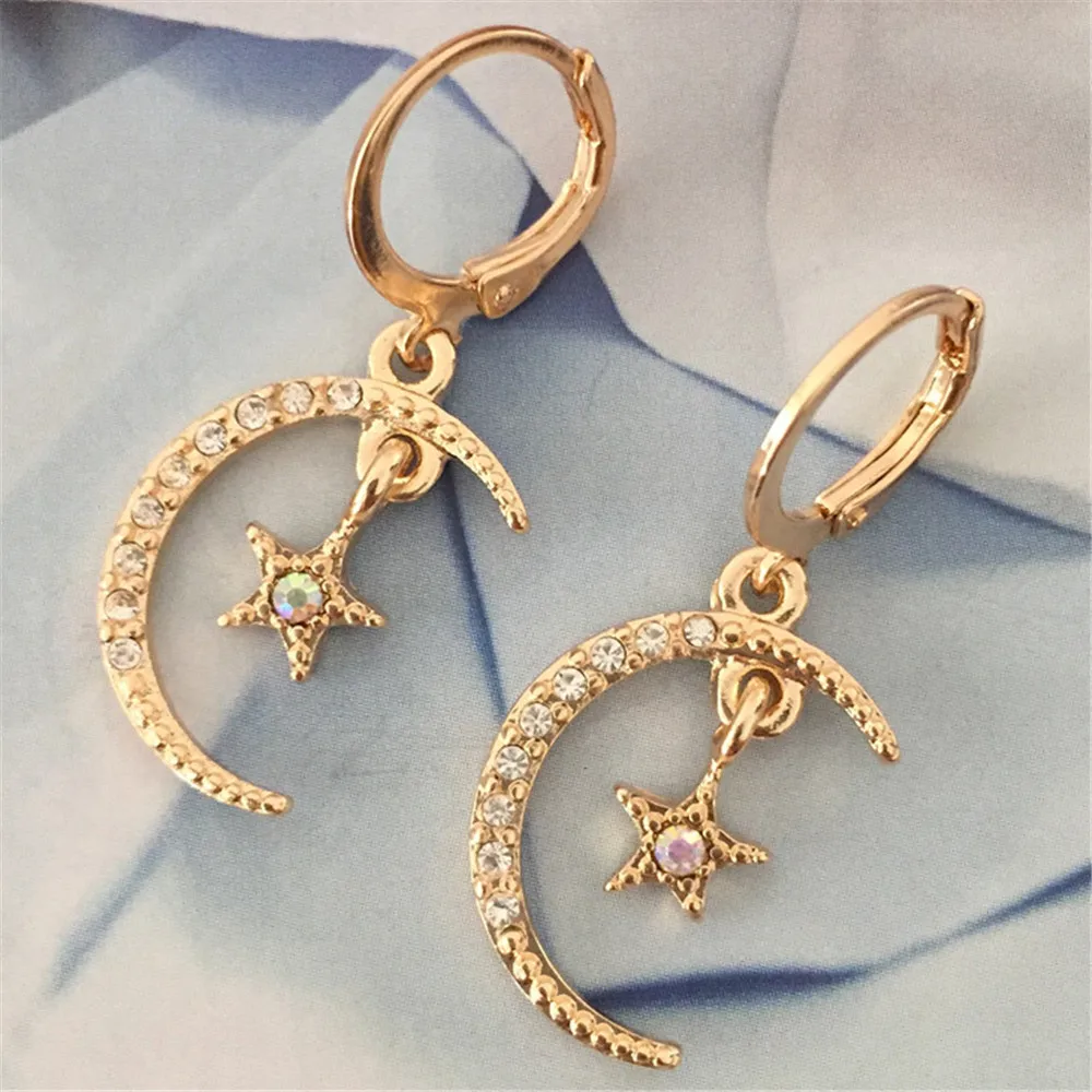 Серьги золотого цвета Блестящий Луна и звезда Висячие серьги свадебные серьги модные корейские драгоценности серьги