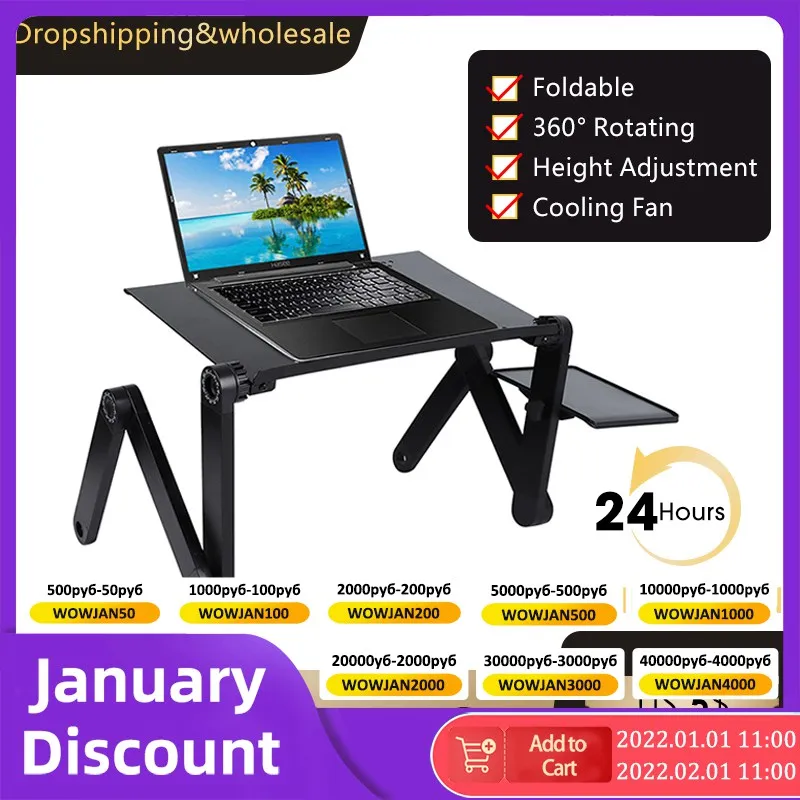 Регулируемый переносной алюминиевый стол для ноутбука, Эргономичная подставка для телевизора, кровати, ПК, настольная подставка для ноутбука, настольная подставка с ковриком для мыши 420*260 мм