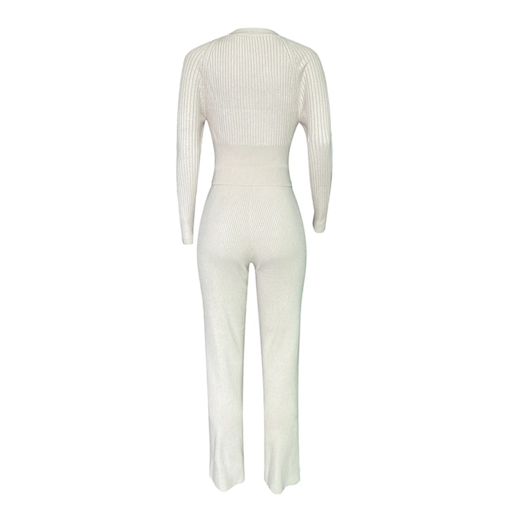 Повседневный уютный вязаный комплект из двух предметов в полоску, домашний женский топ с длинными рукавами, широкие штаны, осенне-зимний теплый домашний костюм