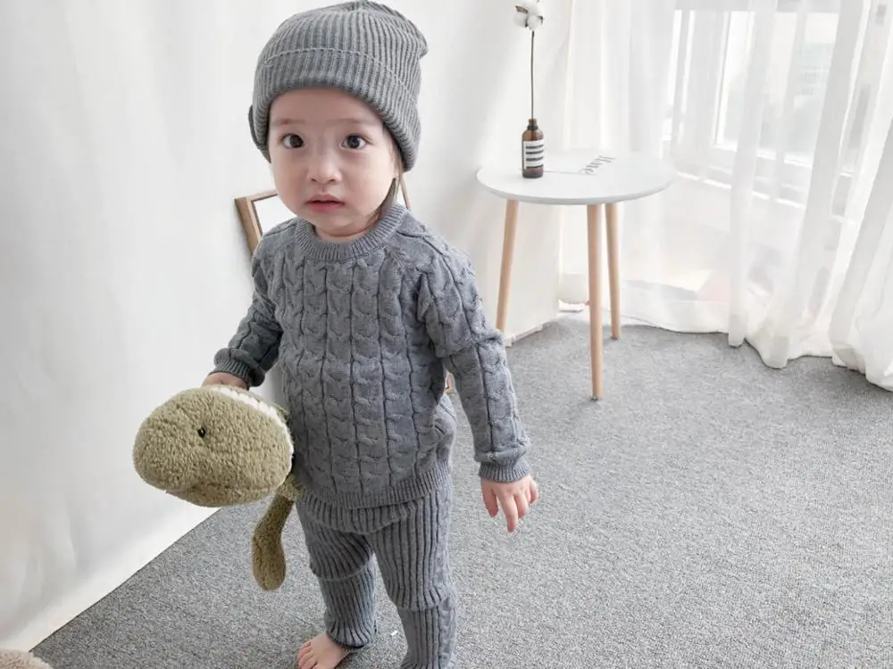 Костюм Humor Bear BaGirls для мальчиков, осенний комплект одежды для маленьких мальчиков и девочек, Зимний вязаный пуловер, свитер + штаны, трикотажный спортивный костюм для маленьких мальчиков