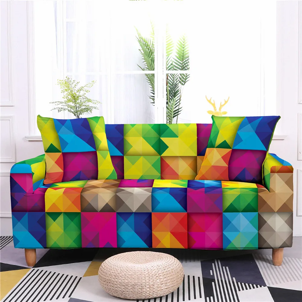 Эластичный чехол для 1234-местного дивана с геометрическим рисунком