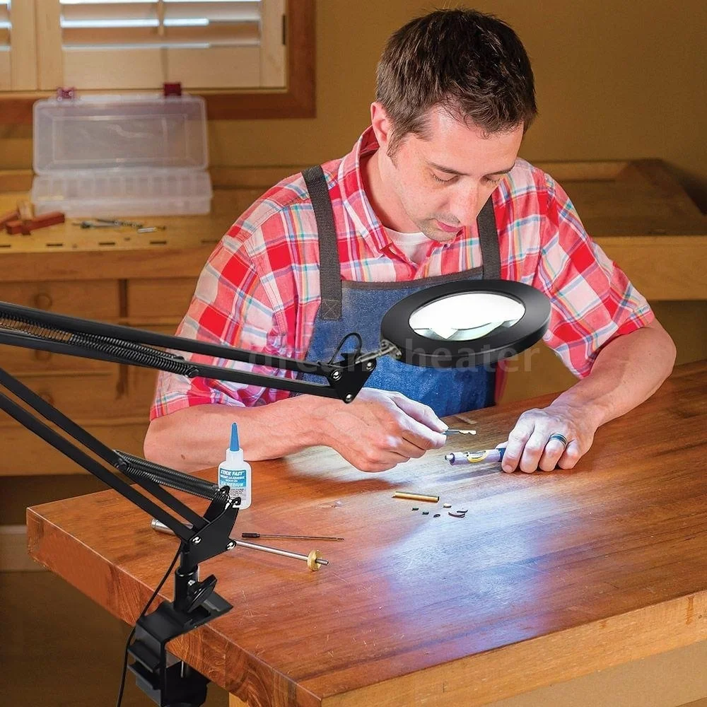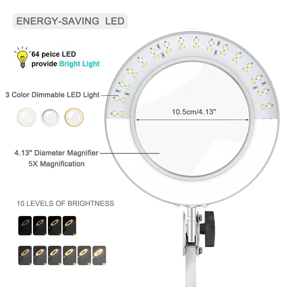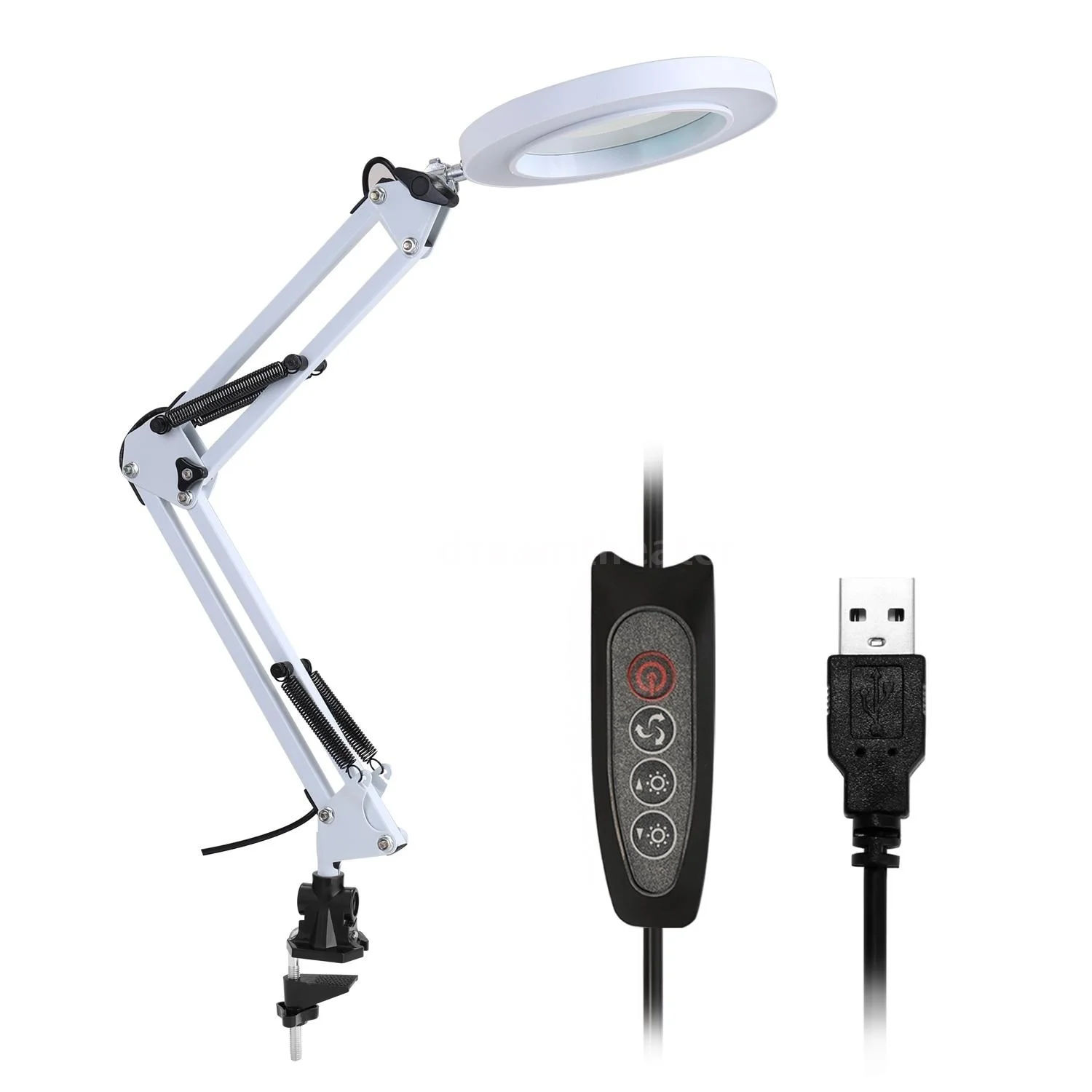 Складная профессиональная Настольная лампа с увеличительным стеклом 5X, Лупа со светодиодной подсветкой Лампа для чтения с затемнением, USB лупа для чтенияпеределкипайки