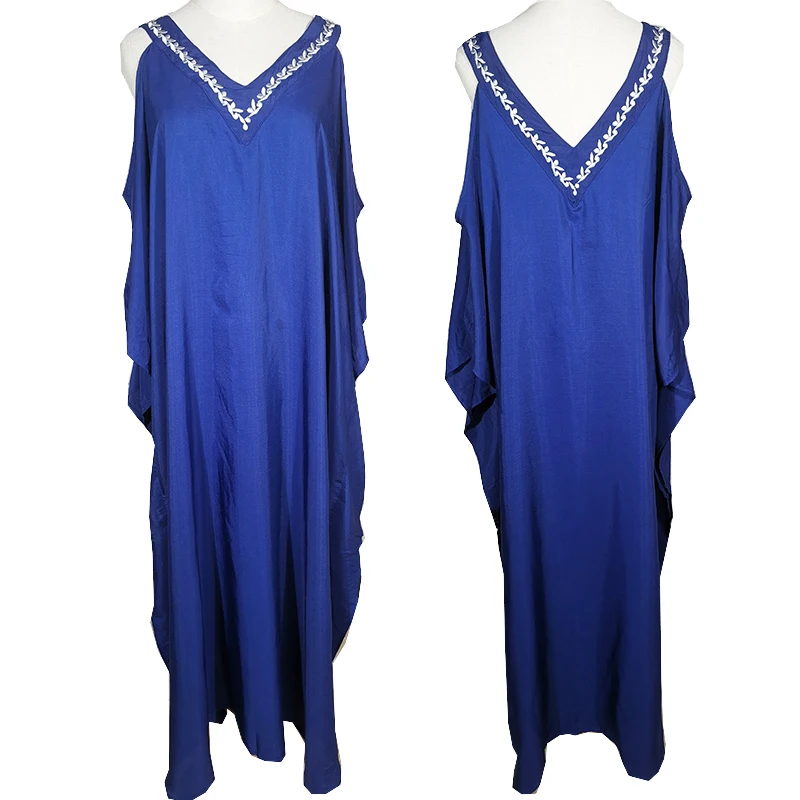 Туника Макси большого размера наряд кафтан на пляж, Пляжная накидка с вышивкой, Saida de купальный костюм Praia, женская накидка на бикини, парео, пляжная одежда