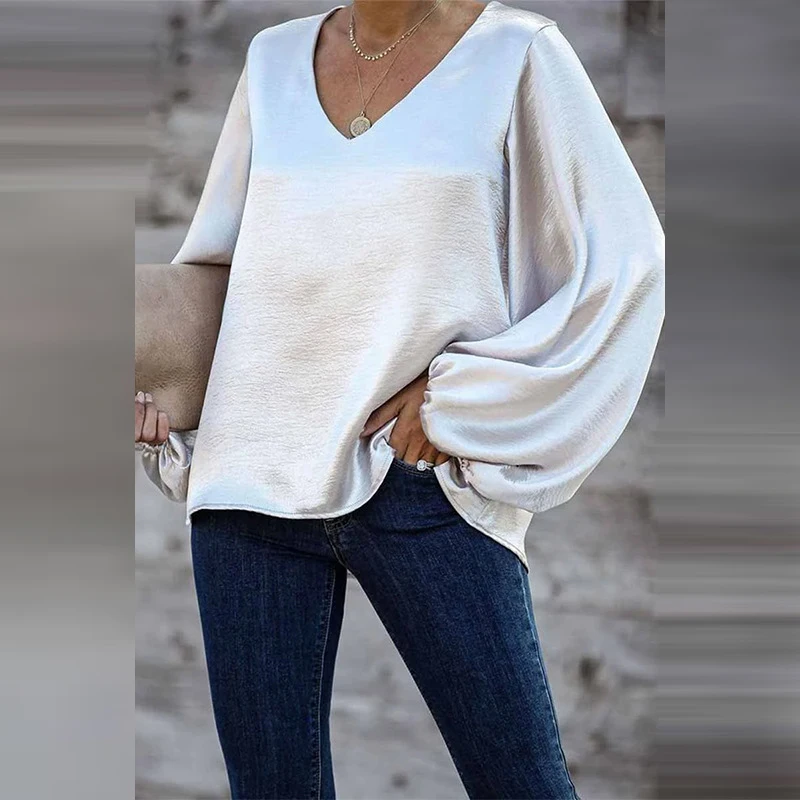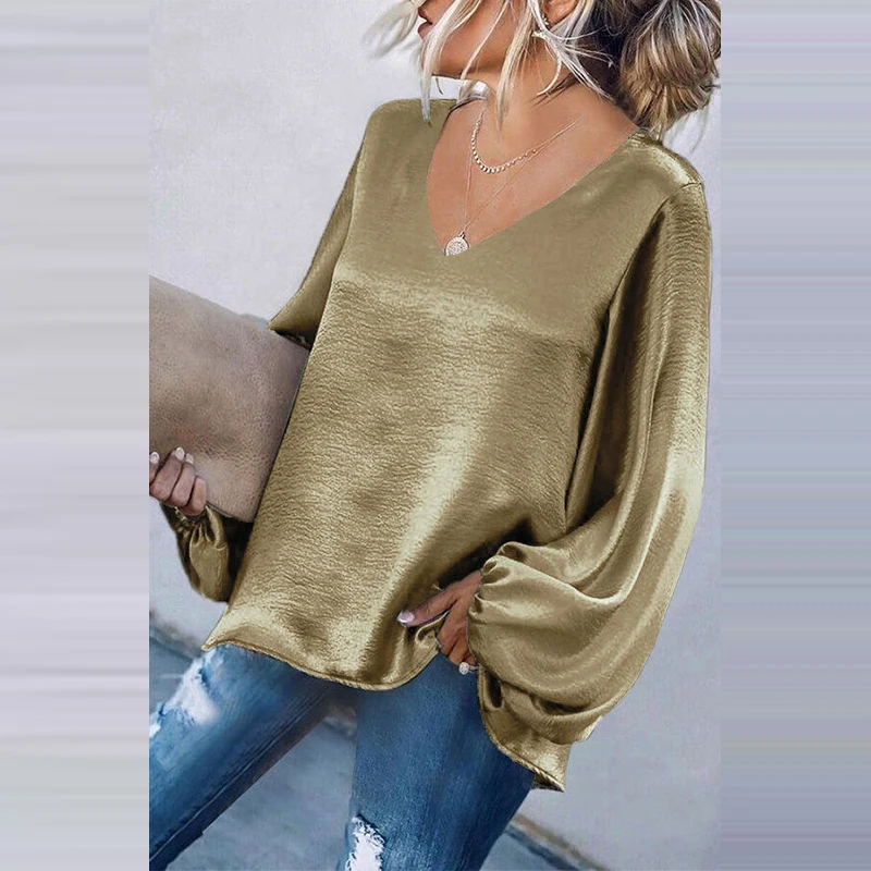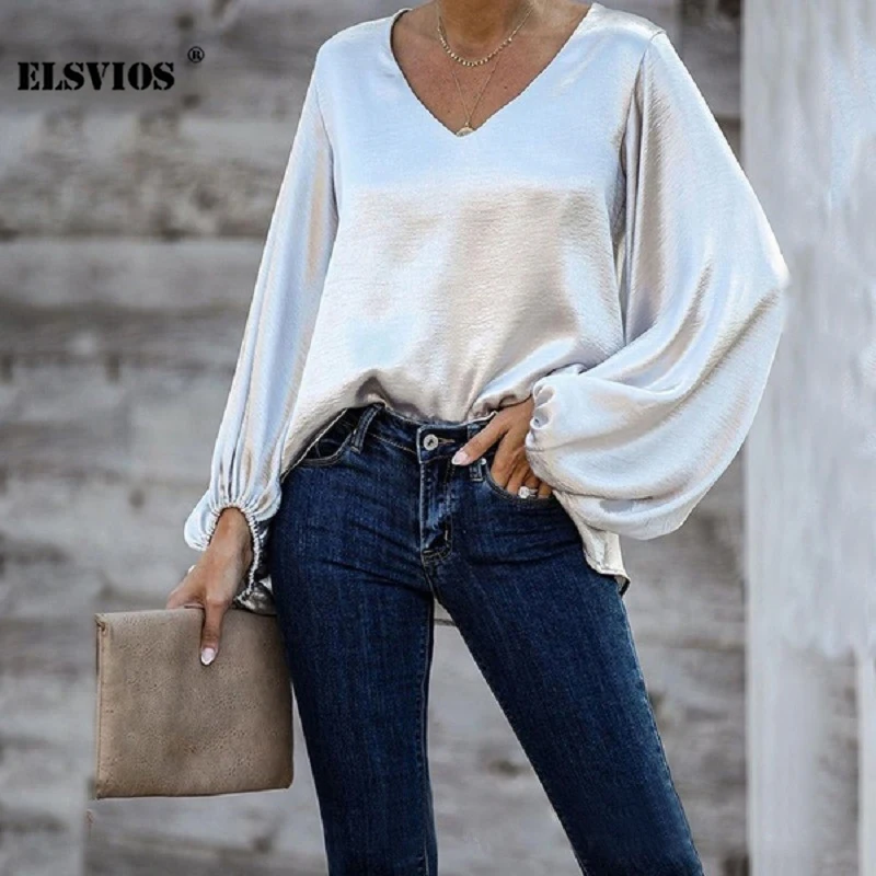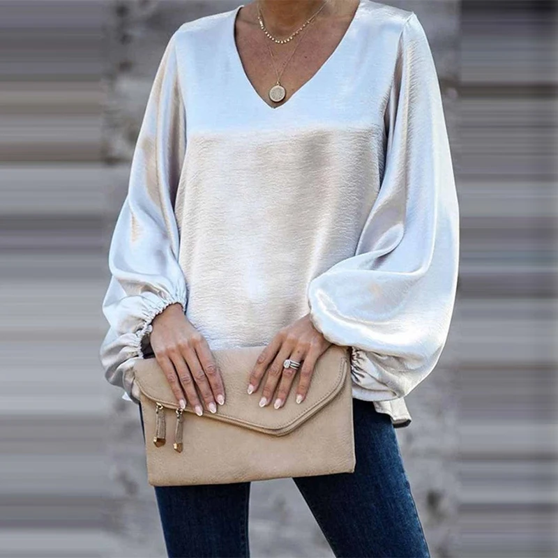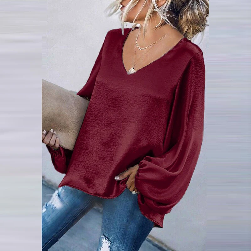 Повседневные Простые Новые однотонные футболки с v-образным вырезом, модные осенне-зимние свободные пуловеры с длинными рукавами, элегантные офисные женские футболки