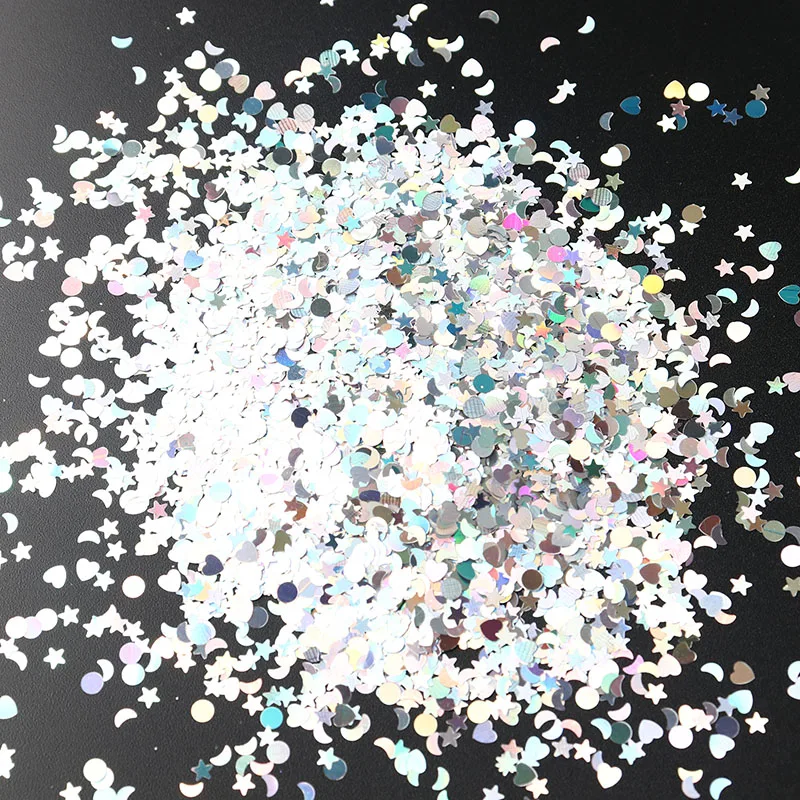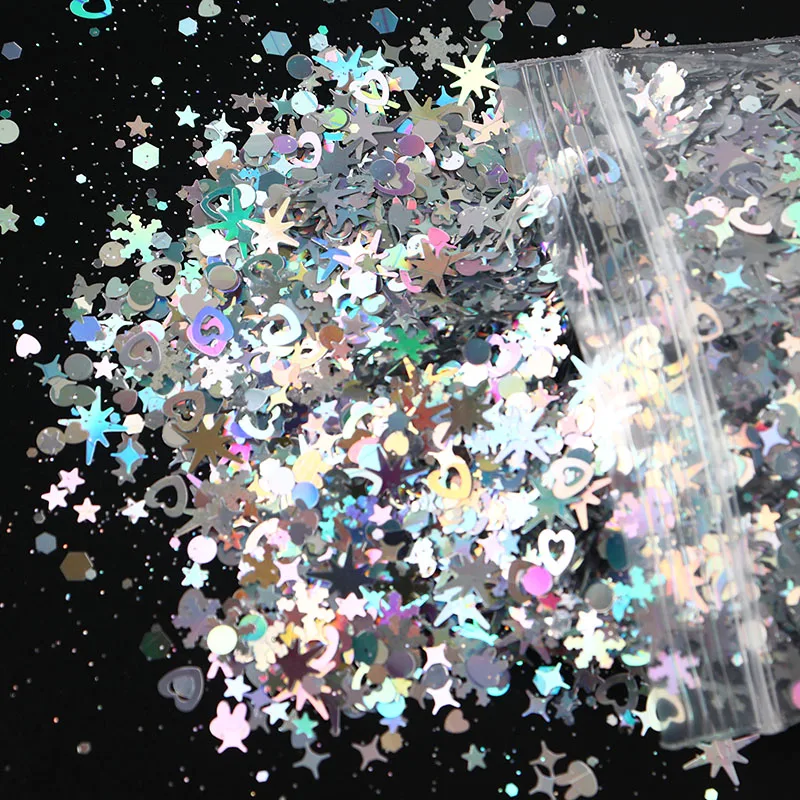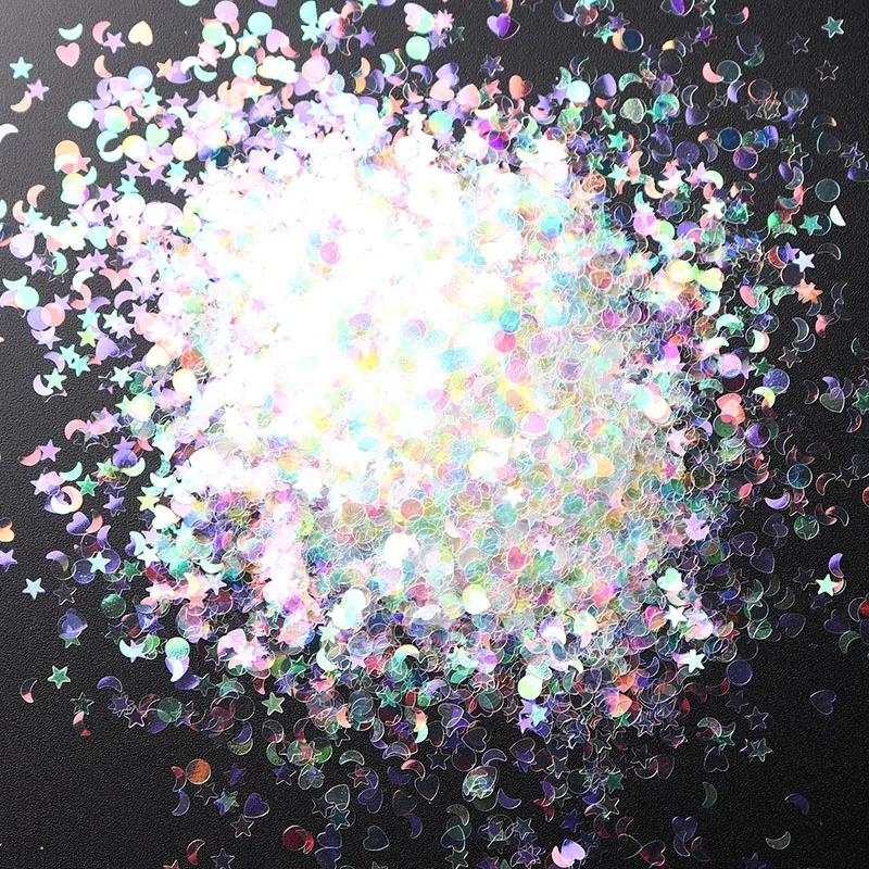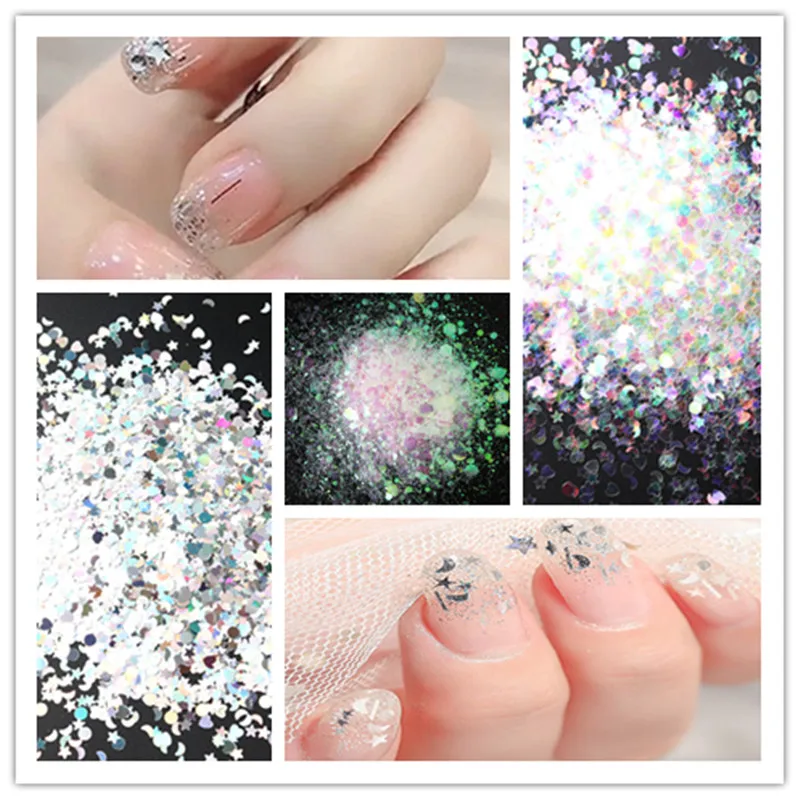 1 Can смешанные звезды и луна в форме сердца хлопья голографические сверкающие лак для ногтей полимерный порошок расшитые блестками украшения для ногтей 10 мл