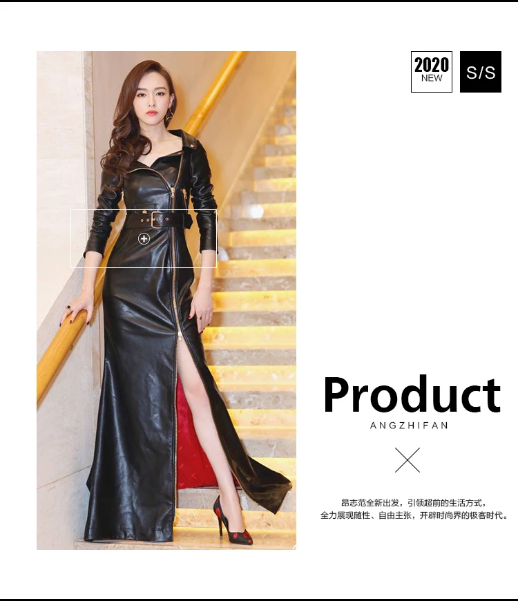 Nerazzurri макси черное пальто из искусственная кожа женское на молнии с длинным рукавом зауженные удлиненные кожаные куртки мода женские осень 2020 кожанное платье женское 2xl