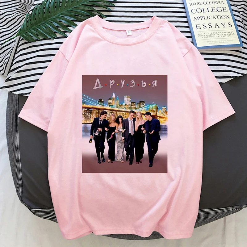 Женская футболка с принтом в стиле Харадзюку, розовая футболка в Ко...