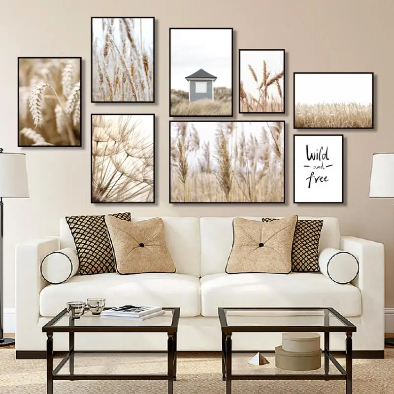 Осенняя Минималистичная фотография Пшеница Одуванчик тростник цветок сухое растение Искусство Настенная живопись холст скандинавский Декор для дома плакат