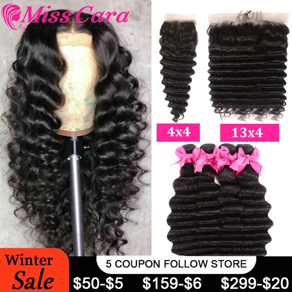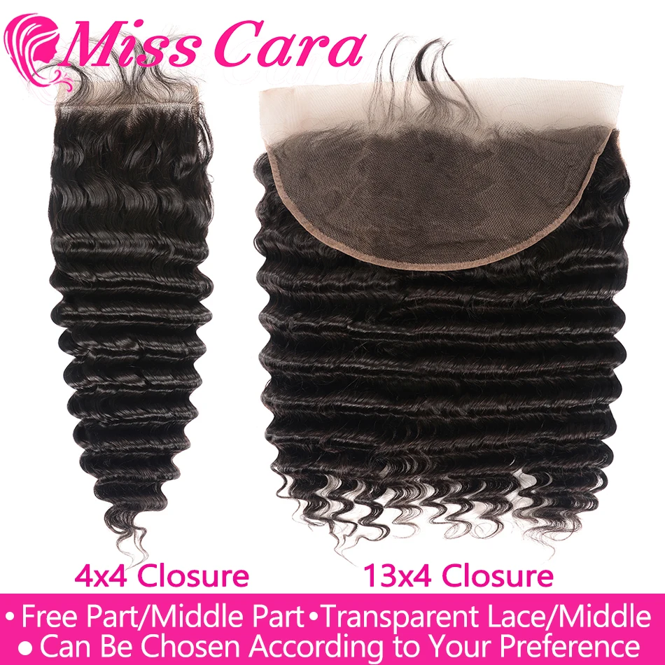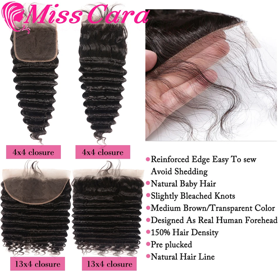 Miss Cara свободные глубокие волнистые пучки с закрытием перуанские 100% Человеческие волосы Remy Предварительно выщипанные фронтальные пряди чернокожих женщин