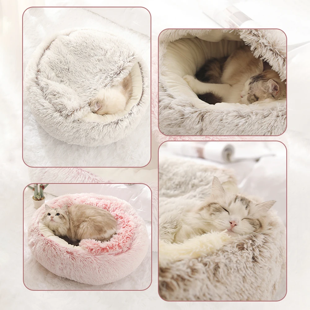 Круглая мягкая плюшевая бархатная мягкая кровать для кошек и собак, подушка, товары для домашних животных