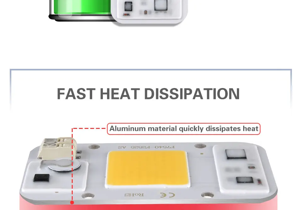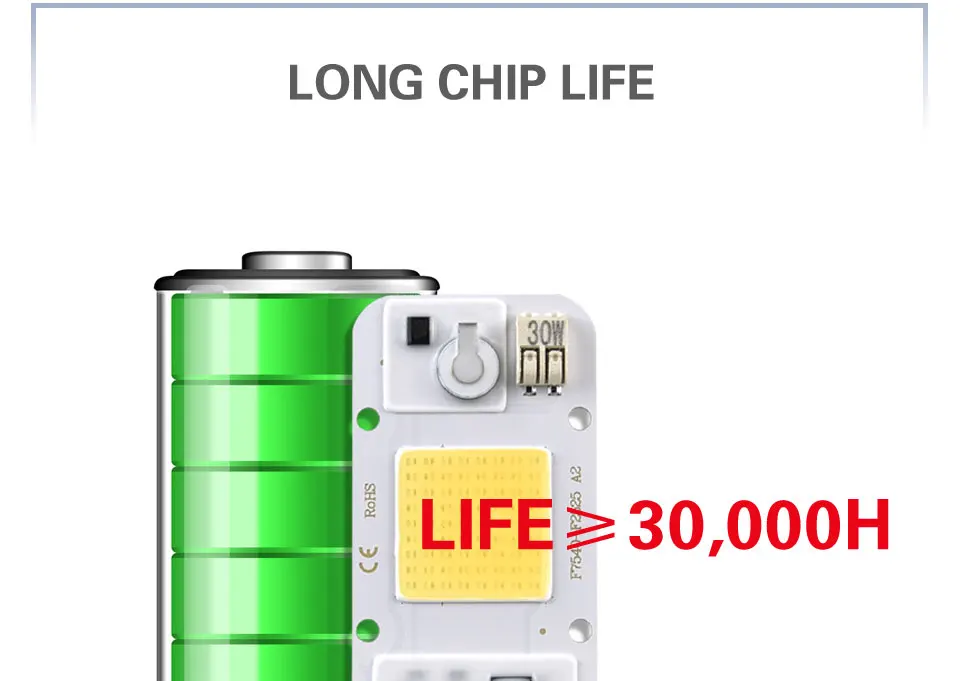 Товар: светодиодный светильник COB Chip Вольт: 220-240 В переменного тока Мощность: 20 Вт 30 Вт 50 Вт Цвет товара: полный спектр 380-780nm/холодный белый/теплый белый Гарантия: 1 год Индекс цветопередачи:>Ra80 Угол луча: 120 градусов Особенность: не нужен драйвер; Смарт IC; Легко DIY (Чип на плате) Срок службы: более 10,000hrs Материал корпуса: алюминий