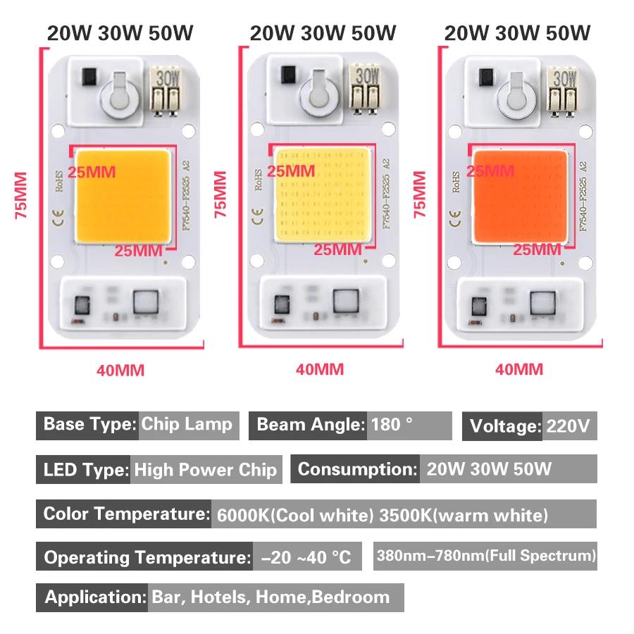 COB светодиодный чип 220 В 20 Вт 30 Вт 50 Вт Холодный теплый полный...