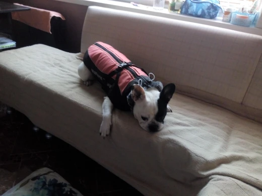 Хорош во всём. Качество на высоте. Есть утяжки в поясе и на шеи. Молния на спинке, очень удобно. Брали на Французского бульдога, вес 12.5 кг размер xxl. Как раз впору. Можно на размер побольше.