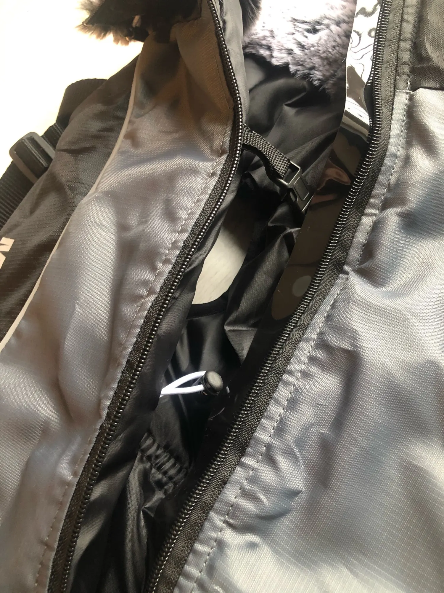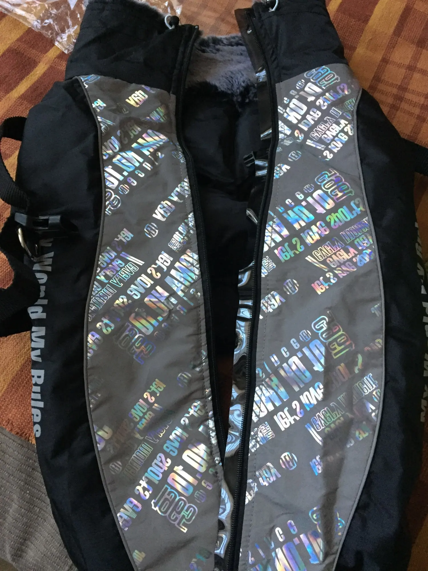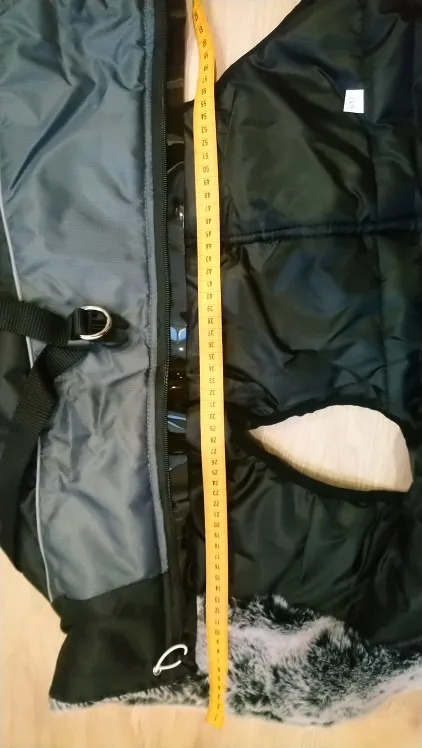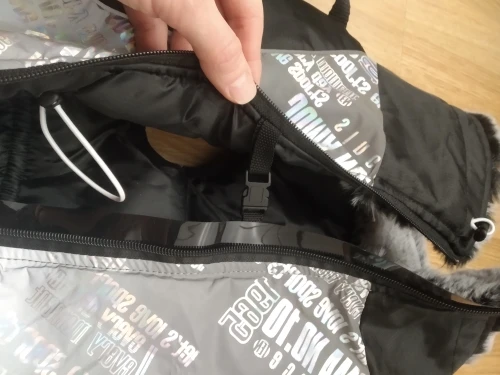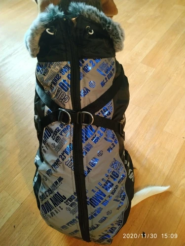 Курточка отличная. Удобная в использовании так как модель хорошо продумана имеется резиновая прослоечка под замком чтобы не зазевывалась шерсть утяжечки на меховой горловине-кстати. мех очень приятный .имеется два крепления соединения на одном имеется кольцо для поводка. Пока собака беременна поэтому немного теснит ,но после родов будет самое оно! Если что у нашей Джессики есть inst: jessi_ymnichka