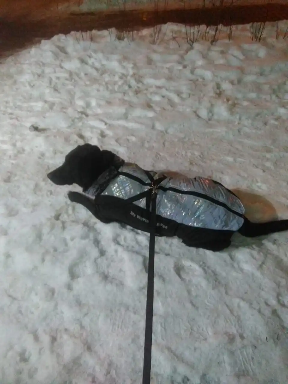 Просто прелесть и себе такую хочу, правда мне казалось что изнутри она вся пушистая, но нет, только воротничок! От грязи можно вполне протереть тряпочкой или промыть под краном и повесить стечь на вешалку не выжимая, высохнет быстро!!! Блестит и при свете и даже в темноте, красотень , я довольна, пёс доволен, сегодня от многих наслышались комплиментов, очень рада что решила сделать такой новогодний подарок для своей собаки, обязательно закажу следующий светоотражающий с синими надписями! Давно засматривалась на эту жилетку и только у этого продавца нашла подходящий размер, лабрик у меня широкогрудый 88см,сидит идеально, очень понравилась лента и замочек чтобы при застегивании не защимилась шерсть, надеюсь в носке прослужит долго!