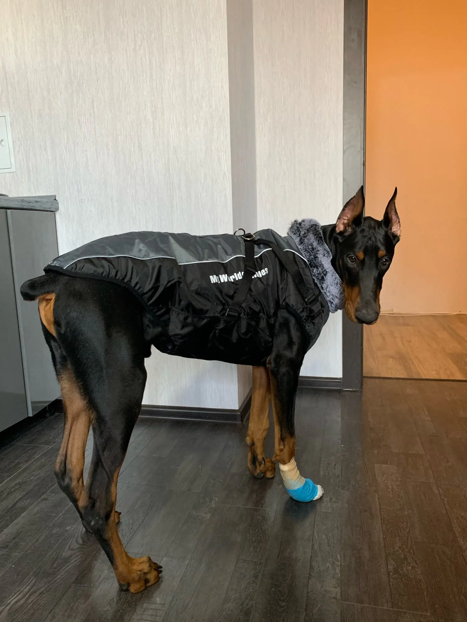очень быстрая доставка, очееенььь качественный пошив, красивый, и в размер. на щенка добермана 11 месяцев заказал 6XL. Просто супер