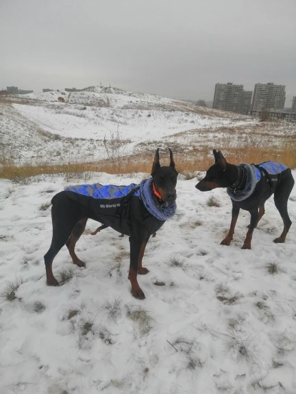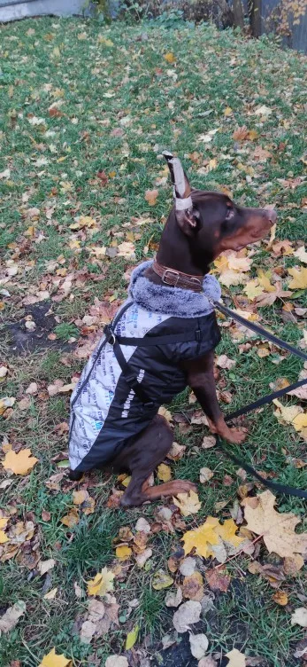 Обалдеть!!! Я нашла идеальную помпону наконец то!!!! Она идеальна!!!! Продумано всё до мелочей, даже до мини застёжки внутренней на шее!!! Прилегание плотное!!! Верхний фиксатор чёткий!!!! Десять балов в общем!!! Для добермана трудно подобрать одежду из-за грудака ( у моего 95 см, шея 55)