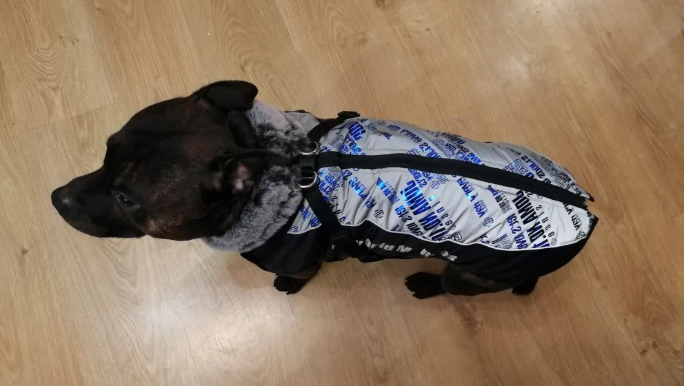 Курточкой довольна. Покупала на стаффарширского бультерьера, 4 XL.Села отлично, размер соответствует. Качество отличное, всем советую. Спасибо продавцу.
