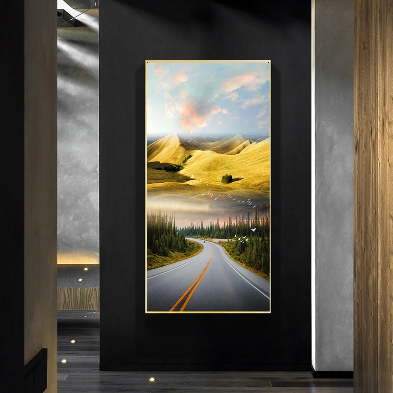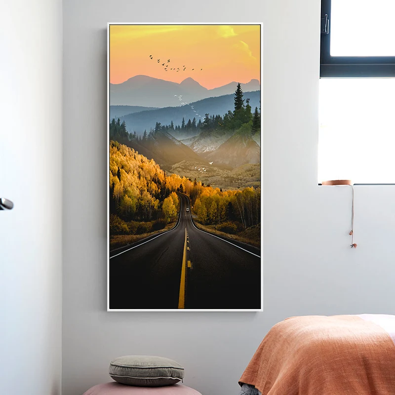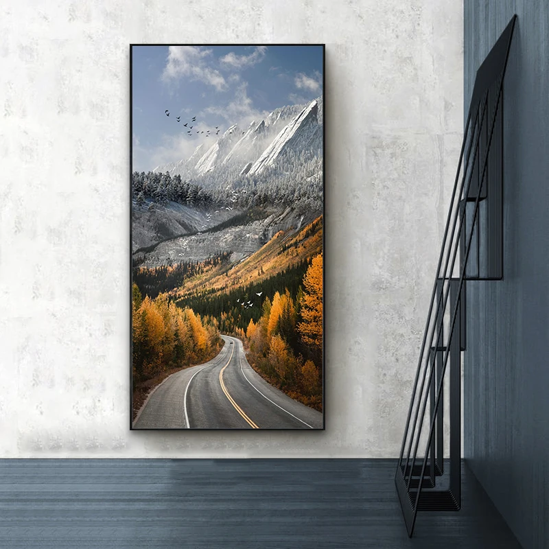 Холст печать и постер лес скандинавский пейзаж Снежная горная дорога для гостиной настенная живопись без рамки Postres Декор 6-4